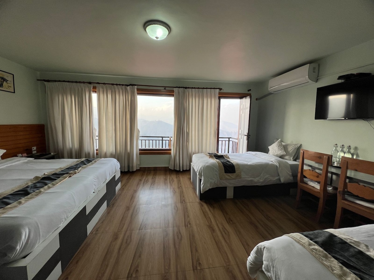 You'll enjoy views of the surrounding forests and the Himalayas from both your bedroom and the balcony.
