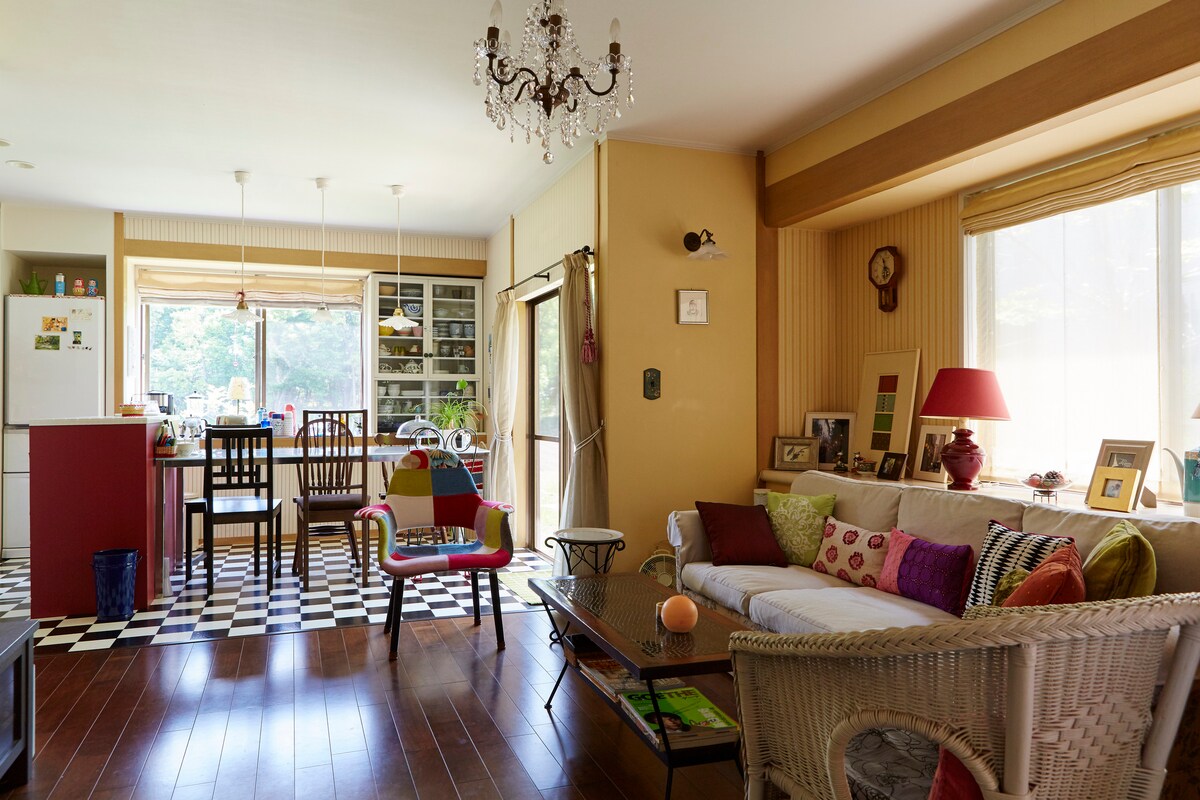 一栋注重简约和设计的整租旅馆。请您一边欣赏自然的庭院,一边度过悠闲的时光。