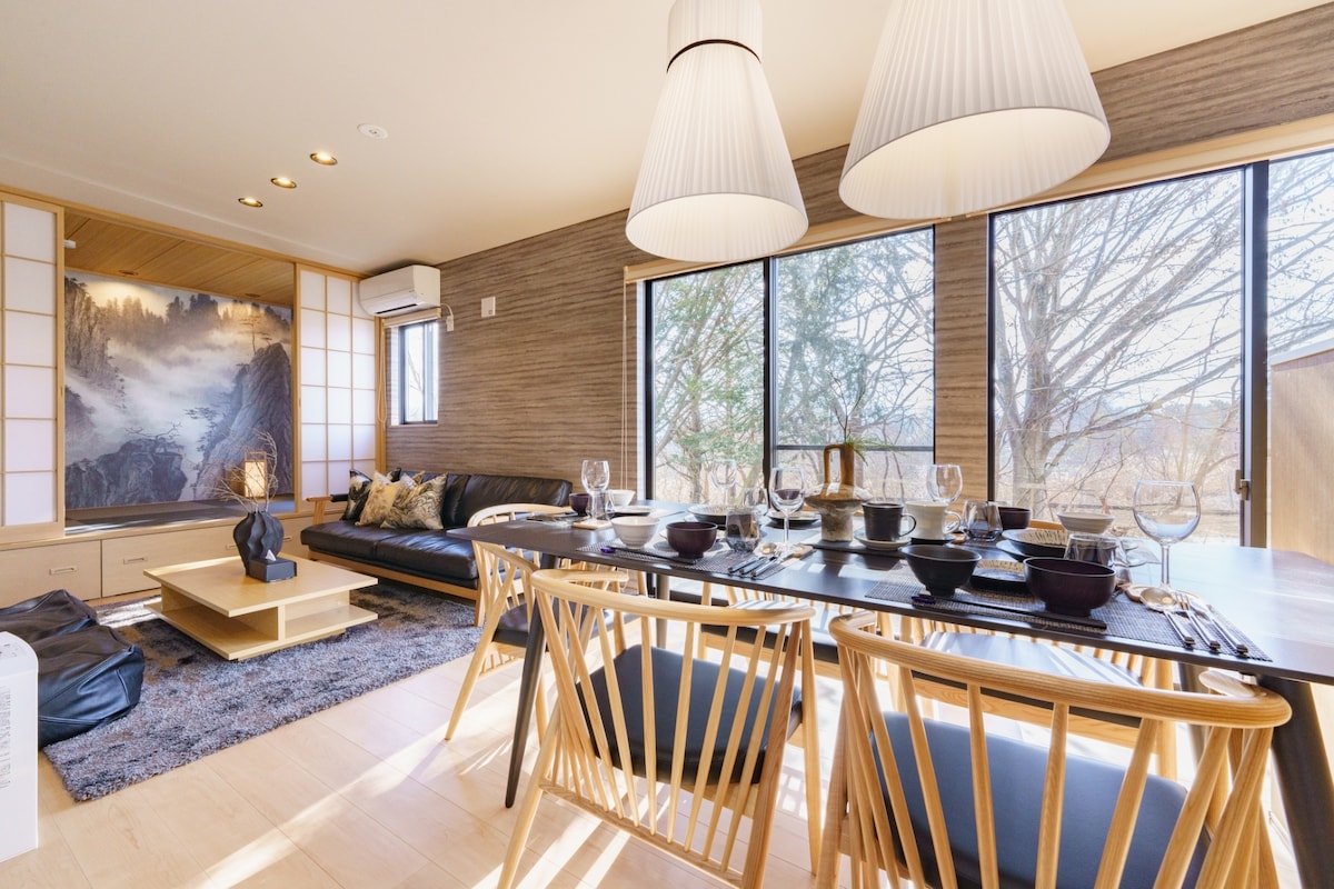 NewOpen 富士山景观 靠近河口湖站 4LDK 每天限一组 全新建筑别墅 可容纳最多12人
