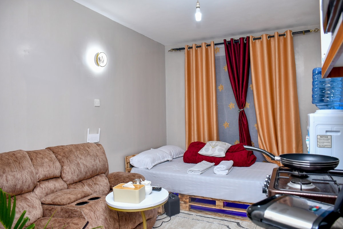 Tucked away in one of Nairobi’s most sought-after neighborhoods. Step inside and discover warm interiors that make you feel instantly at home. The space features a modern kitchen, a cozy bedroom with soft linen finishes and a stunning bathroom. Whether you’re in town for work, leisure, or a little of both, enjoy fast Wi-Fi, a dedicated workspace, and access to a calming atmosphere, this is more than a place to stay — it’s a space to recharge, reconnect, and experience Nairobi with style.