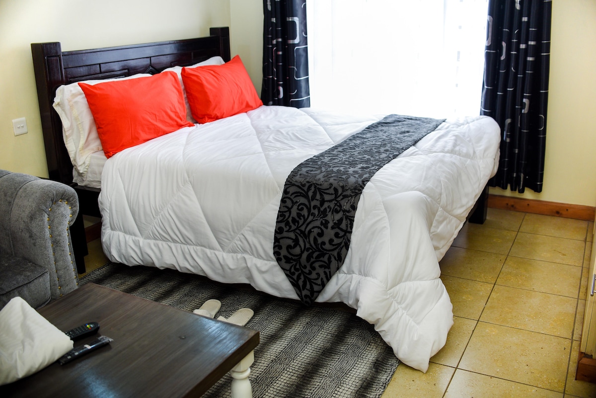 Experience the next best thing to a 5-star hotel. This luxurious one-bedroom apartment with pool-view, offers sweeping vistas of the Nairobi skyline, where you can experience a beautiful African sunset. The apartment provides an oasis of comfort and serenity away from the bustling city. Whether on business or leisure, the apartment presents the ideal environment to relax and work.