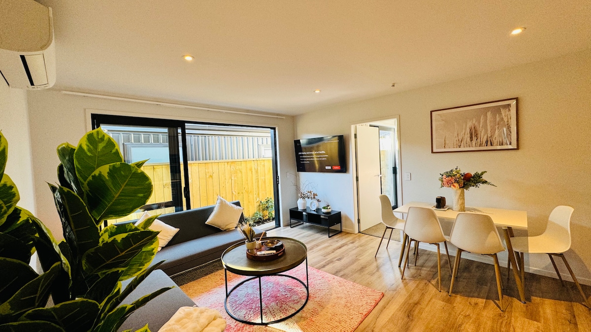 Tiny Home in the heart of Frankton and fully enclosed with secure fencing and garden space for your furry friends to enjoy! This brand new tiny home was completed in 2023, with all the mod-cons you could want. A toasty fireplace to keep you warm in winter, great water pressure with instant hot water and fully plumbed, wifi and smart TV. Perfectly located in the heart of Frankton within walking distance of shops and restaurants, or take in the lake views and pick your own summer fruit trees!