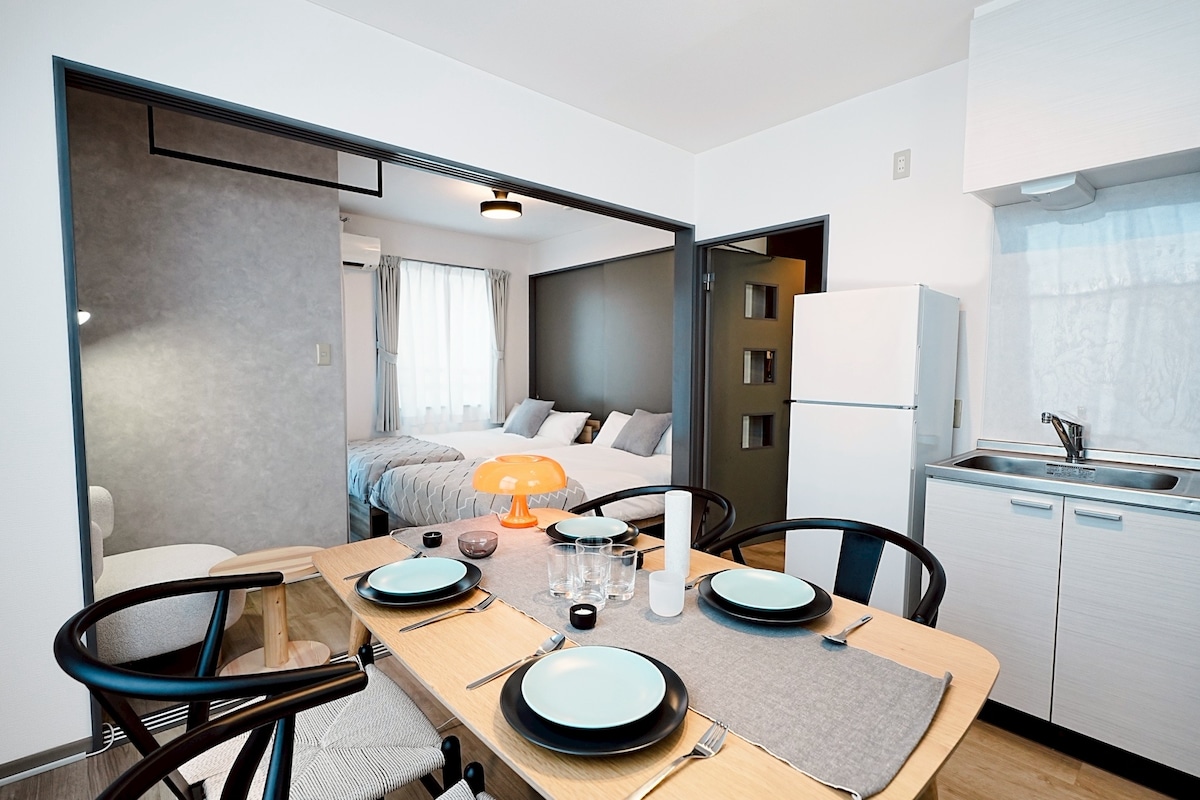 JR鶴見駅から徒歩4分。 日本旅館風の1LDK(52㎡)のお部屋で、最大4名様のご宿泊が可能です。 現代的でありながら、昔なからの日本的な雰囲気も感じれるお部屋です。 羽田空港から直通の京急鶴見駅からは徒歩8分のアクセスです。 JR線と京急線へのアクセスの良さは東京( 渋谷、新宿、浅草など)、横浜、鎌倉方面へのアクセスを便利にしてくれます。 寝室はグレーの漆喰壁が伝統的でありながら、モダンな印象を与えてくれ、日本情緒を感じれます。 特に広縁のラタンチェアでゆったりすると、都会の喧騒から離れた懐かしい雰囲気を感じれるお部屋です。 リビングの白タイルキッチンは4口のガスコンロがあり、一度にたくさんの調理も可能です。 滞在中は無料高速Wi-Fiをご自由にお使いいただけます。 ■注意点 近くに交通量の多い道路があり、車両の音が聞こえます。 伝統的な日本的な建物のため、音が響きやすいです。 音に敏感な方は気になる可能性があります。これまでのレビューをご参考ください。