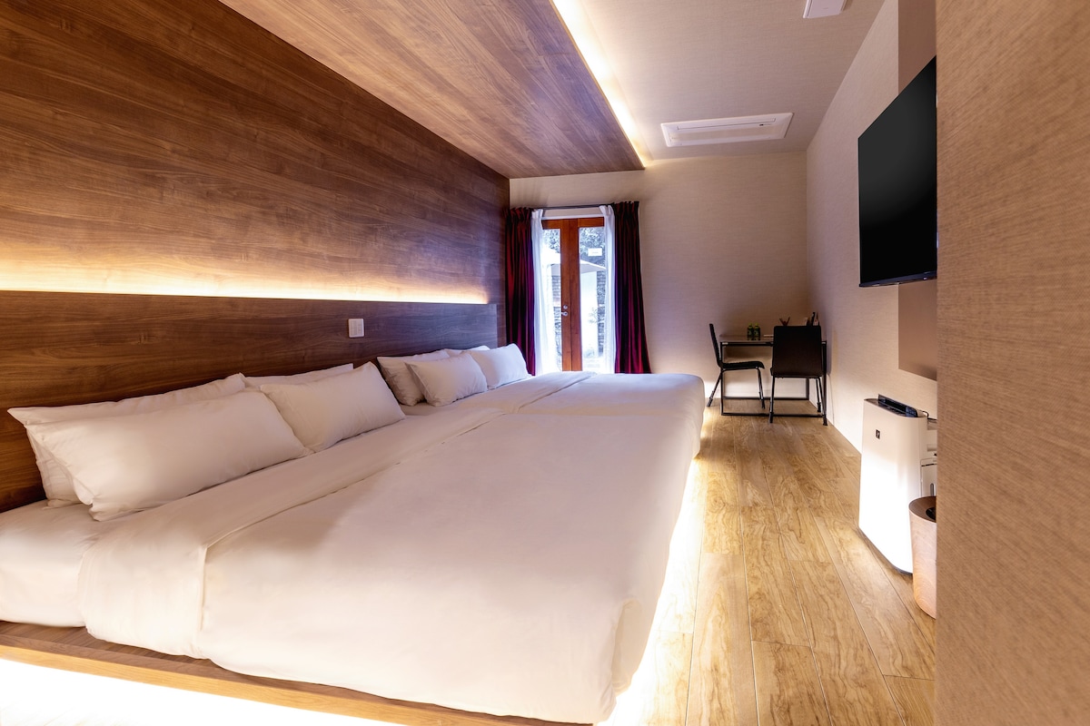東京リリアルホテル#201 室内面积26㎡ 1张2*2m大床 2张1.95*1m小床可同时容纳4人