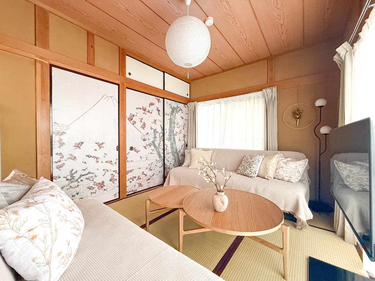 "SUMIRE AOI HOUSE" is a small Japanese house. The basic structure of the house was designed in 1952 by Makoto Masuzawa, a leading architect in Japan. And the house was redesigned by Makoto Koizumi in 1999. I had lived 20 years with my family. The sense of space by the south-facing large windows and the stairwell, it will make you attracted. The area has some parks and fields, and it's leisurely. I can introduce nearby shops. Please spend your time like traveling daily life.