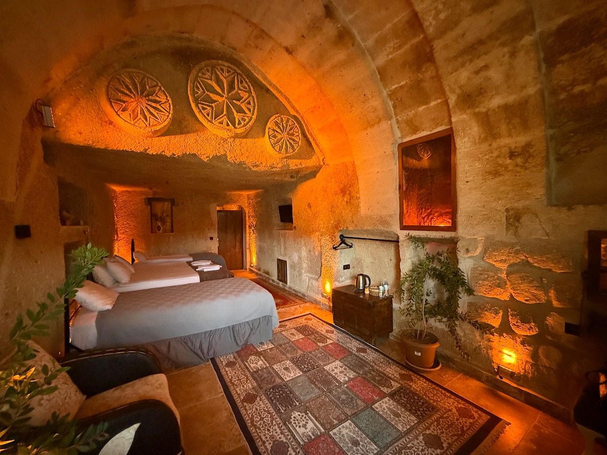 Kapadokya’nın eşsiz atmosferinde, geleneksel mimariye sahip otantik taş yapı odamızda konaklayın. Konaklamaya Türk kahvaltısı dahildir. Sessiz, huzurlu ve merkezi bir konumda yer almaktadır. Odamız doğal taş mimarisi sayesinde yazın serin, kışın sıcak bir ortam sunar. Özel banyo, temiz nevresimler ve ısıtma mevcuttur. Çiftler ve yalnız gezginler için idealdir. Balon turu ve bölge aktiviteleri konusunda memnuniyetle yardımcı oluruz.