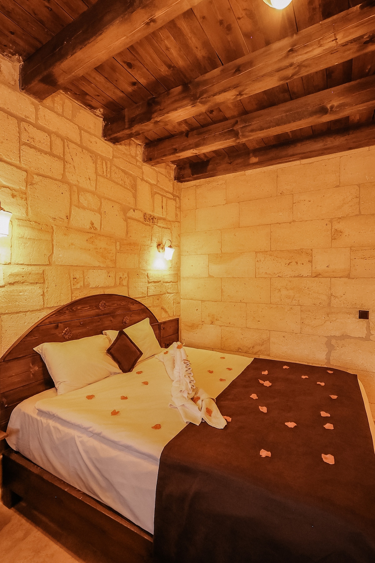 A unique accommodation experience among historical and natural stone/cave structures in the Ürgüp district of Cappadocia. For a small amount you can enjoy our mixed Turkish breakfast at our terrace. If you wish, you can sit at the terrace area in the evening and watch the magnificent view of Ürgüp and find peace. The listing consists of a Large double bed and a smaller double bed (140x200) and can accomodate 4 people. Great choice for families with children!