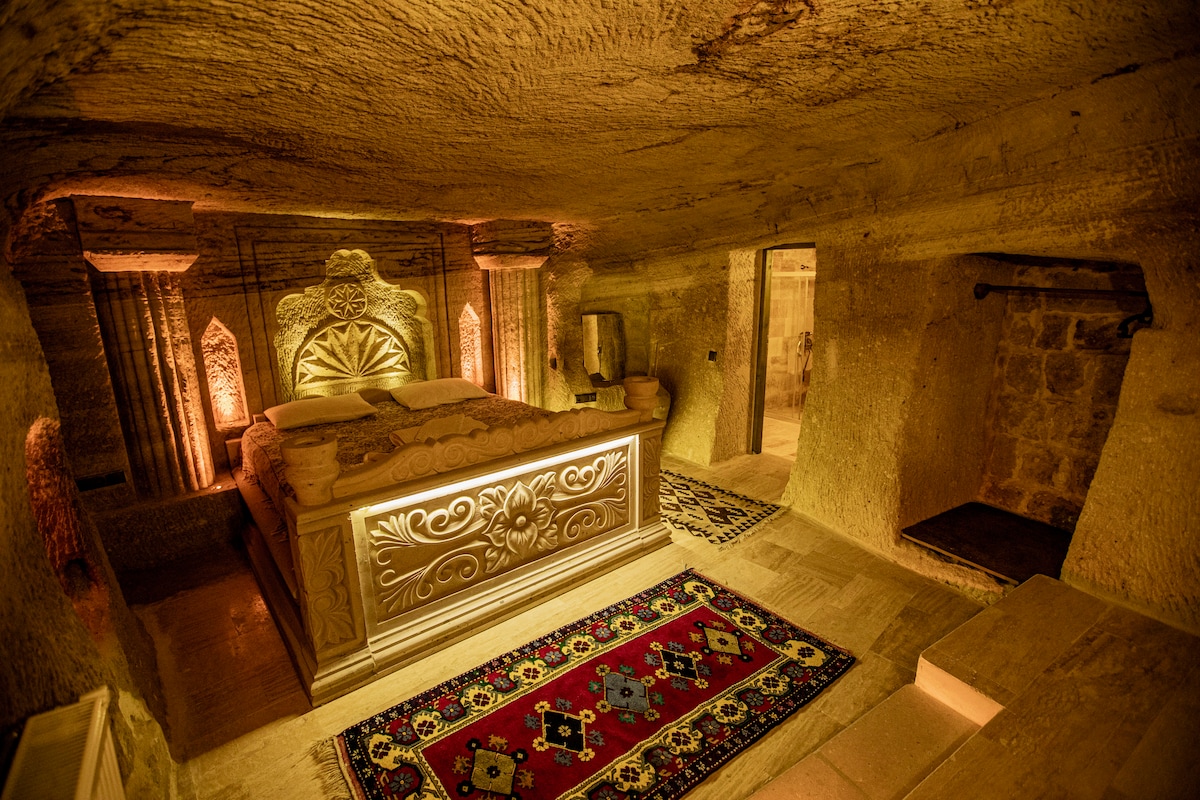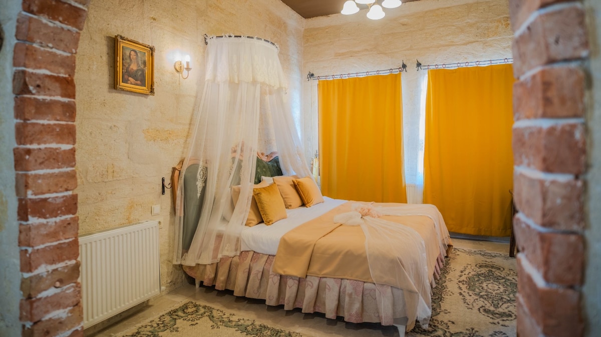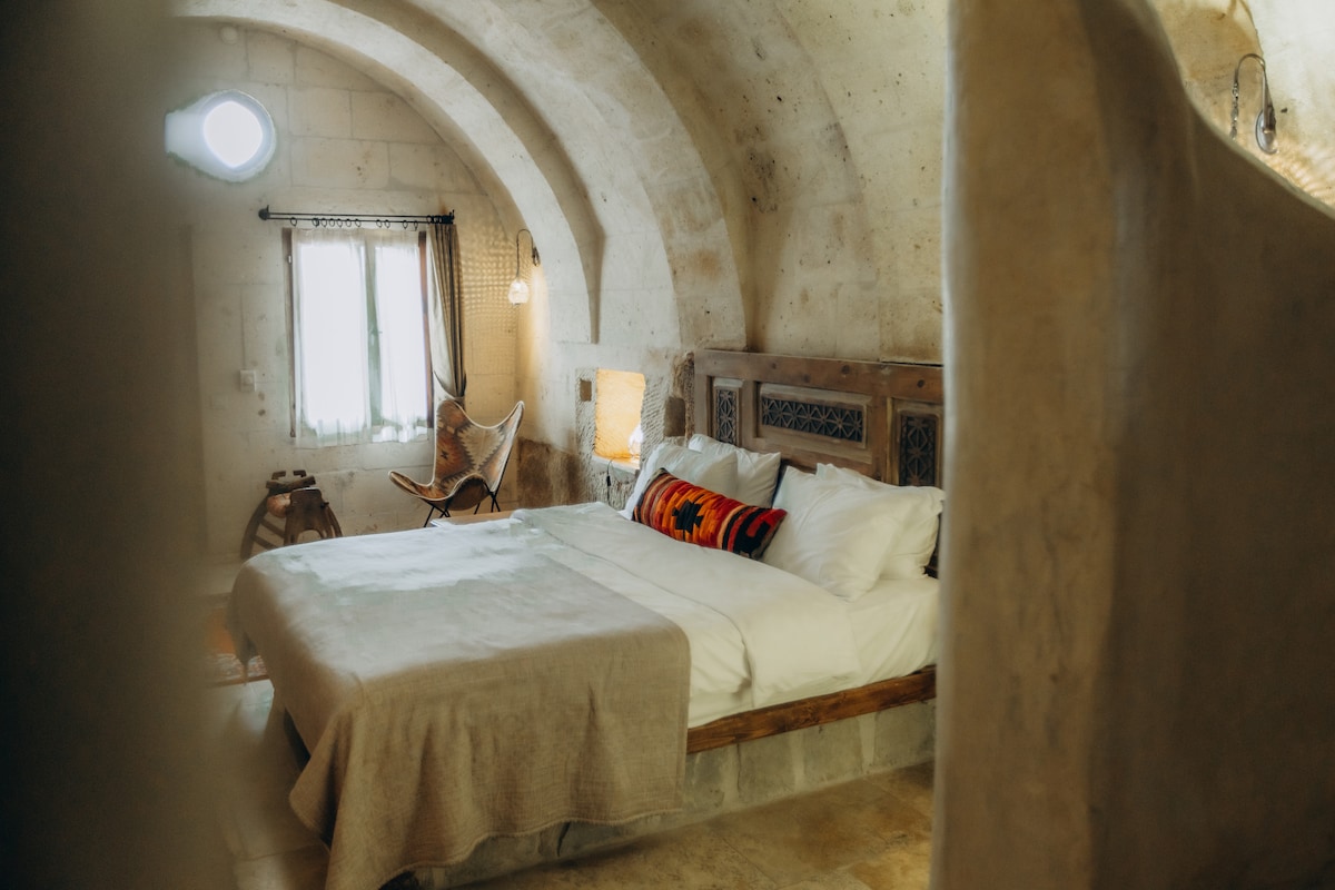 Nestled in an 18th-century seminary school, Sedirli Konak Cave Room offers a perfect blend of history and modern comfort. This unique room features authentic stone-carved architecture and a peaceful veranda to relax and take in the atmosphere. Restored with care in 2021, it combines traditional charm with modern amenities, providing a tranquil escape for travelers seeking an authentic Cappadocian cave experience with a story rooted in history.