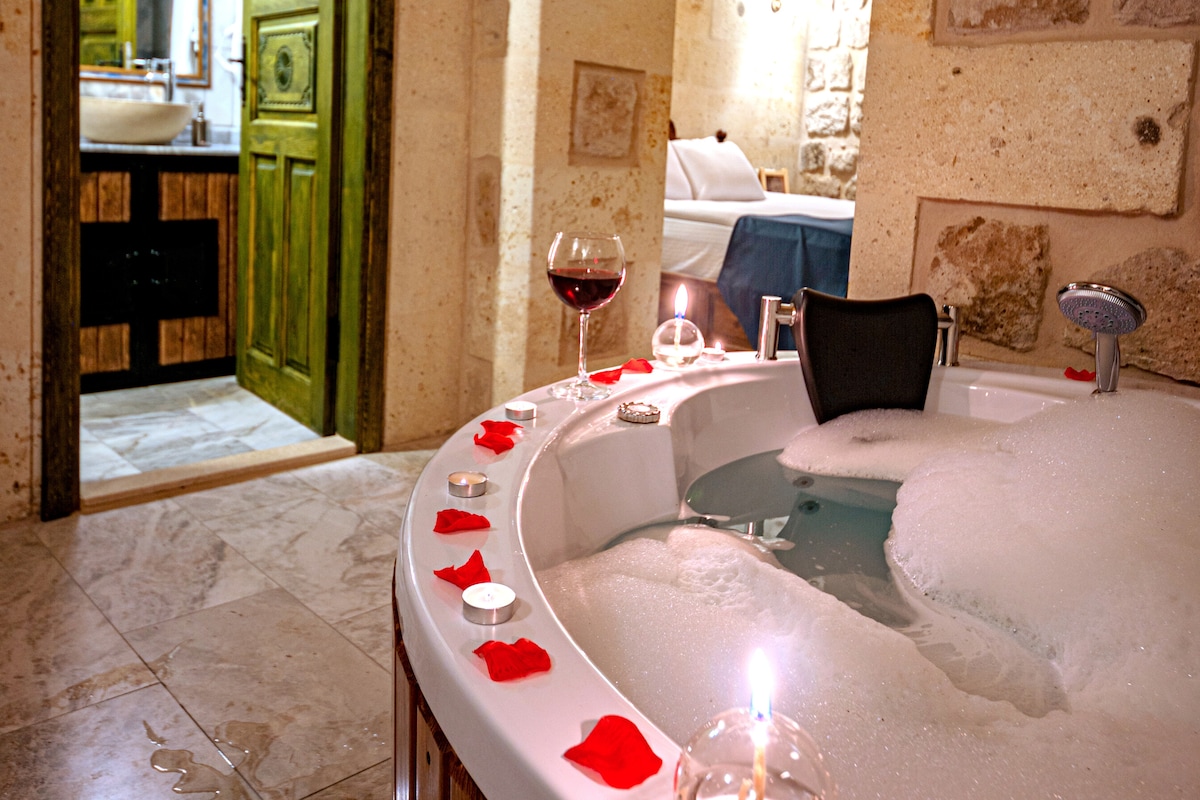 Discover the ultimate luxury in our Sky Blue Pool Suite with Waterfalls at the historic Gamirasu Junior Hotel. This enchanting suite features a stunning sky blue pool with mesmerizing waterfalls inside the room. Perfectly blending modern comfort with historic charm, our suite offers a unique and unforgettable experience. Located in the heart of Cappadocia, you’ll be surrounded by breathtaking landscapes and rich history. Book now to indulge in a serene and luxurious getaway.