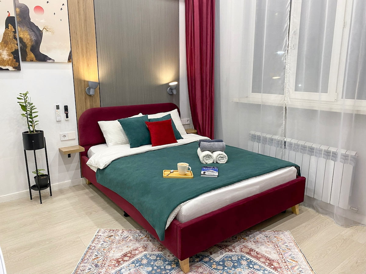 Experience the perfect blend of Japanese simplicity and Scandinavian coziness in our Japandi studio. Bright, serene, and thoughtfully designed, it features natural materials, warm textures, and minimalist décor. Enjoy a comfortable bed, fully equipped kitchenette, workspace, and high-speed Wi-Fi. Ideal for relaxation, work, or short city getaways. Quiet neighborhood with cafes, shops, and easy transport access. A calm retreat in the heart of the city.