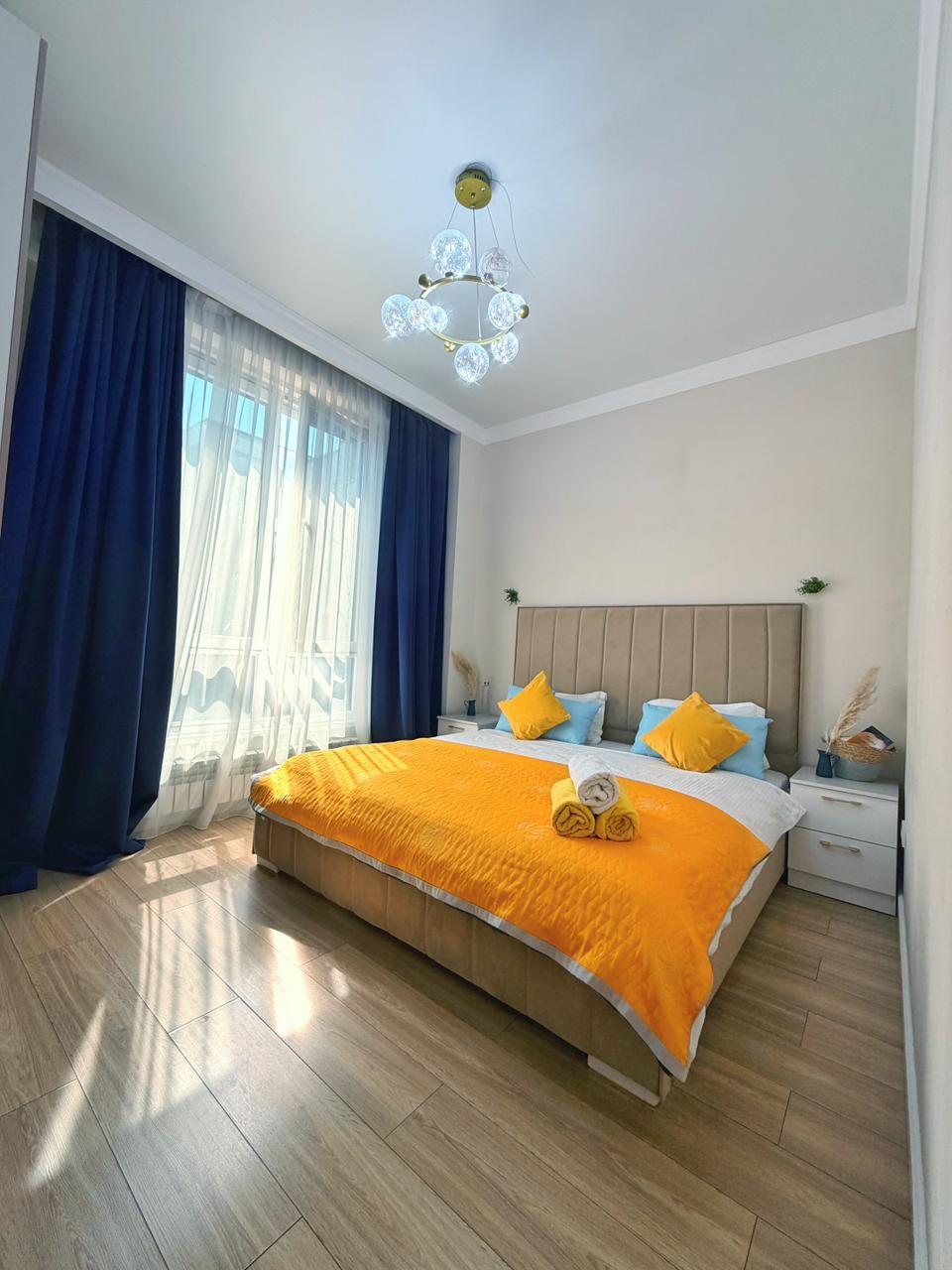 Апартаменты с шикарным видом на горы и город ждут своих гостей Вы окунетесь в атмосферу уюта и комфорта. Имеется вся необходимая бытовая техника, постельные принадлежности и полотенца. Близость к достопримечательностям города. В пешей доступности Starbucks, отель RIXOS, рестораны национальной кухни, караоке-бары, ночные клубы, фитнес центры, ТРЦ. Удобная транспортная развязка. В ЖК круглосуточный мини-маркет и магазин напитков, пекарня со свежей выпечкой.итесь стильным отдыхом в центре города.