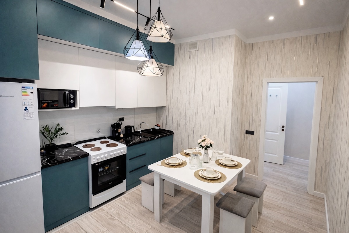 Have fun in our cozy and stylish place. Modern and functional studio in Almaty city for 2-4 people. Infants and children friendly. Newly refurbished entire place has everything you need for your convenient stay. The apartment has fully equipped kitchen, Wi-Fi and all needed amenities. The apartment is located next to the big shopping mall with an array of restaurants, cafes, with supermarket. The main City Walking street is in 10 minutes by walk.