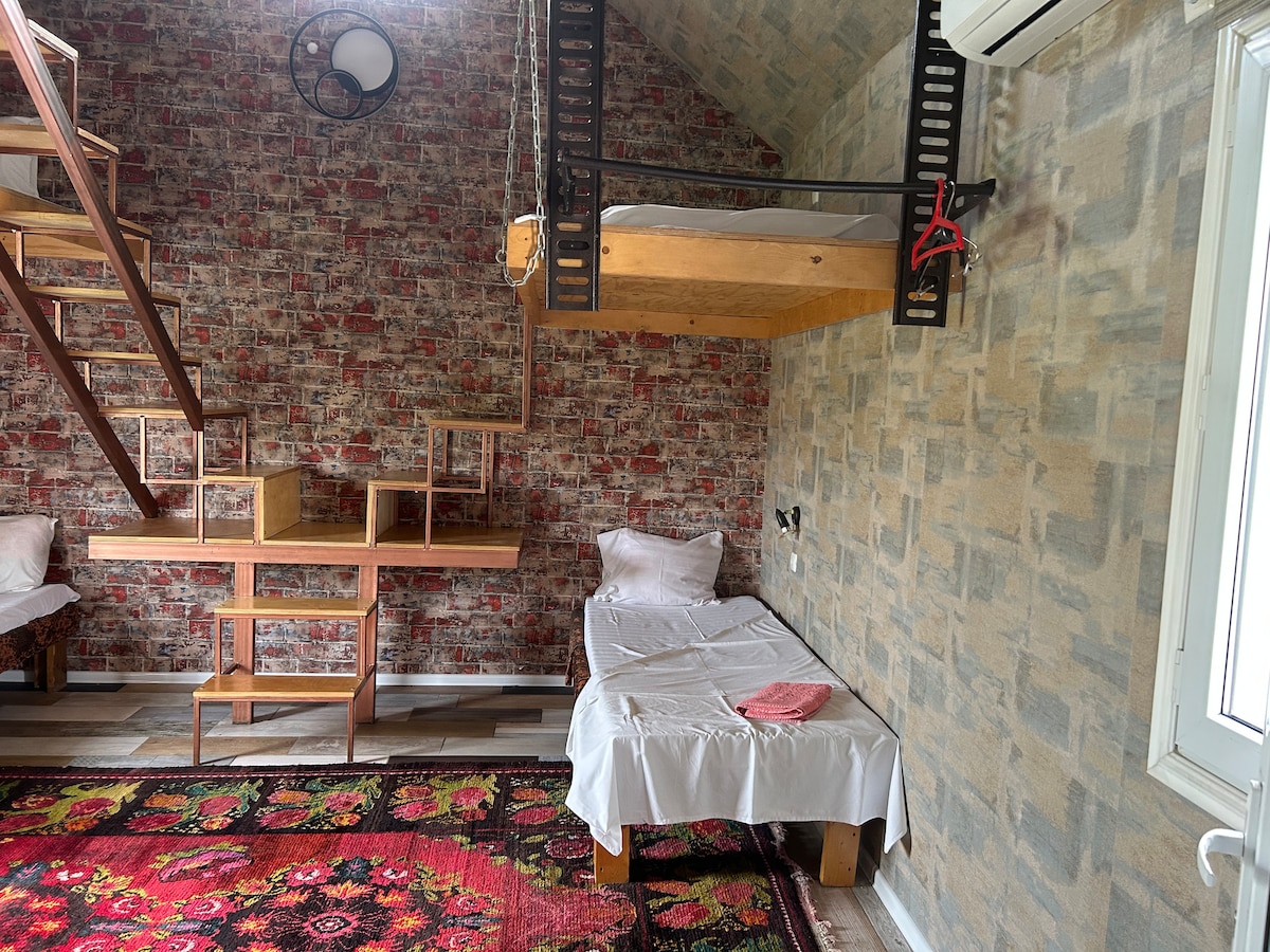 아직 Apartment or Hotel을 선호하십니까? 저희 숙소는 시내 근처 원룸 형태의 별채 집 1개와 투룸형태의 별채 집 1개개 있습니다. 각 집에는 ,최신 냉 난방시설이 있습니다. 화장실과 샤워실은 내부에 있어 프라이빗하게 사용합니다. 외부 휴게실을 사용할 수 있으며, 조리시설이 있습니다. 대중교통은 . 라임백 지하철역까지 도보 10분 정도. 버스정류장은 집에서 도보 5분정도 걸립니다. 대부분의 알마티 관광지는 숙소 주변에 있습니다. <주변 안내> 1. 주변에 대형 쇼핑몰이 있으며, 차량으로 5분이내에 Arbat streets, Green bazar, Panfilov park, zenkov 성당, Goriki park 등의 주요 관광지가 있습니다. 2. 안전하고 신속하게 전용차량으로 숙소까지 공항 pick up 가능합니다. (5000tg ) 3. Almaty 시내 및 시외관광에 대한 그룹투어 정보를 제공하며, 전용차량으로 private tour를 하실수 있습니다