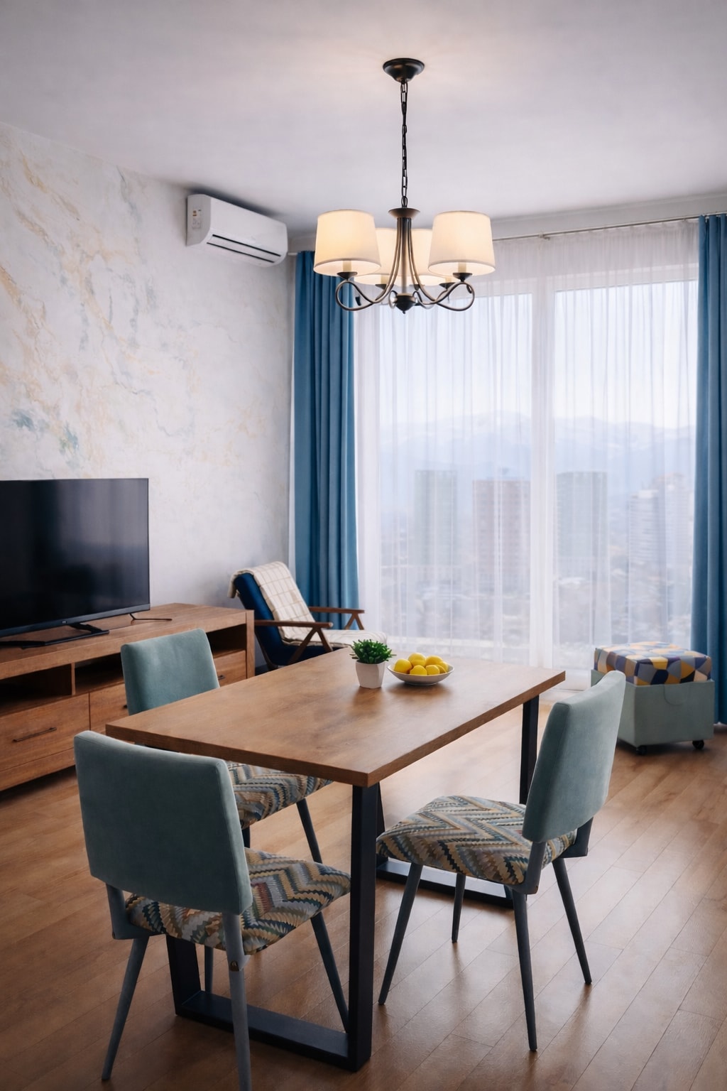 Welcome to a bright 2-bedroom, 2-bath apartment in Almaty’s Golden Square secured residence, 20 minutes ride from the airport. Fine restaurants, supermarkets, and attractions are steps away. Thoughtfully designed with natural wood and ceramic floors, it stays cool in summer and warm in winter. It has calm and elegant vibe. The apartment features layered lighting, a workspace, washing machine, Nespresso machine and dishwasher. Breakfast available for an extra fee — perfect after a long trip.