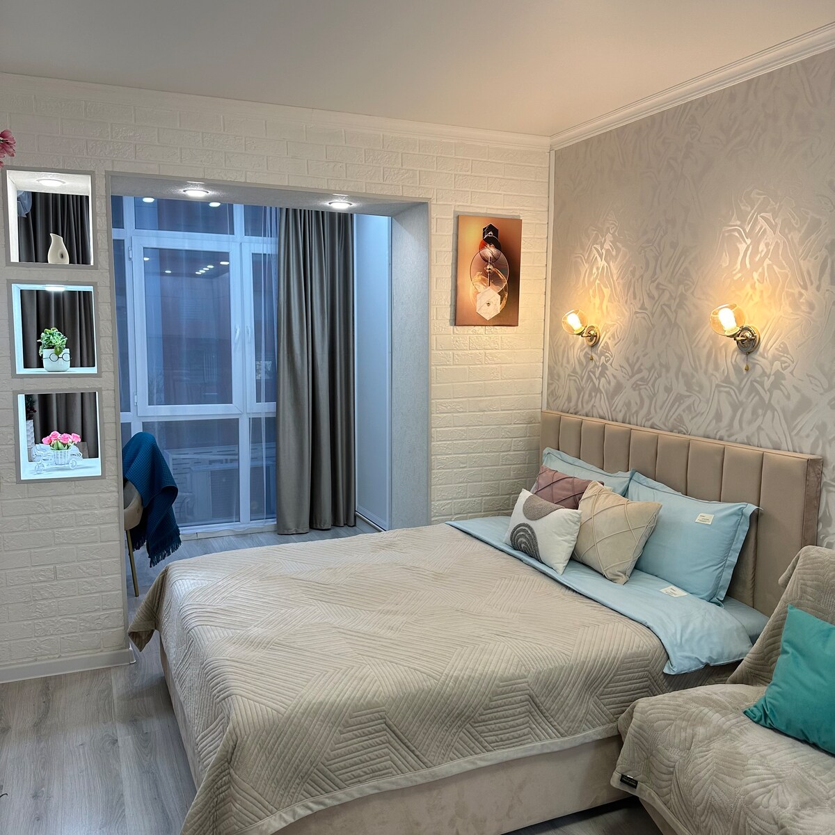 Уютная квартира с евро‑дизайном в центре Астаны. 2 минуты до набережной, Центрального парка и пляжа. Рядом Думан, океанариум, Хан Шатыр, Байтерек. Отлично подойдёт для командировок и романтических поездок. Тихий дом, стильный интерьер, всё для комфортного отдыха.