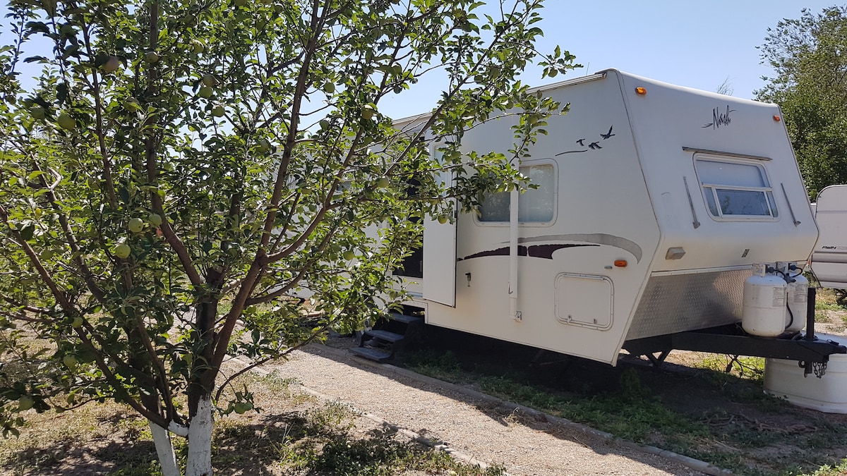 Brand new trailer from USA (Forrest River HW) located in the best place in Almaty for perfect and unique city panoramic views. 5* hotel comfort at the top of green hill with 7/24 support (in English, Turkish and Russian) with optional 4x4 Dodge Durango available for city and suburb rides (additional fee). 2 MTB bikes are included free of charge. 10 minutes drive to Esentai Tower&Mall, 10 minutes walk to minimarket and bus stop.