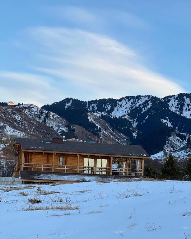 Barnhouse-Style Villa Located just 40 minutes from Almaty, this cozy cottage offers seclusion and comfort. Set on a large green plot with two floors, it features three bedrooms, a spacious living room, and a fully equipped kitchen. Enjoy the terrace, indoor sauna, outdoor kitchen, and BBQ. The secured area includes two houses, accommodating up to 6 people. Nestled in the picturesque Talgar Gorge near a river, it's perfect for a nature retreat away from the city's hustle and bustle.