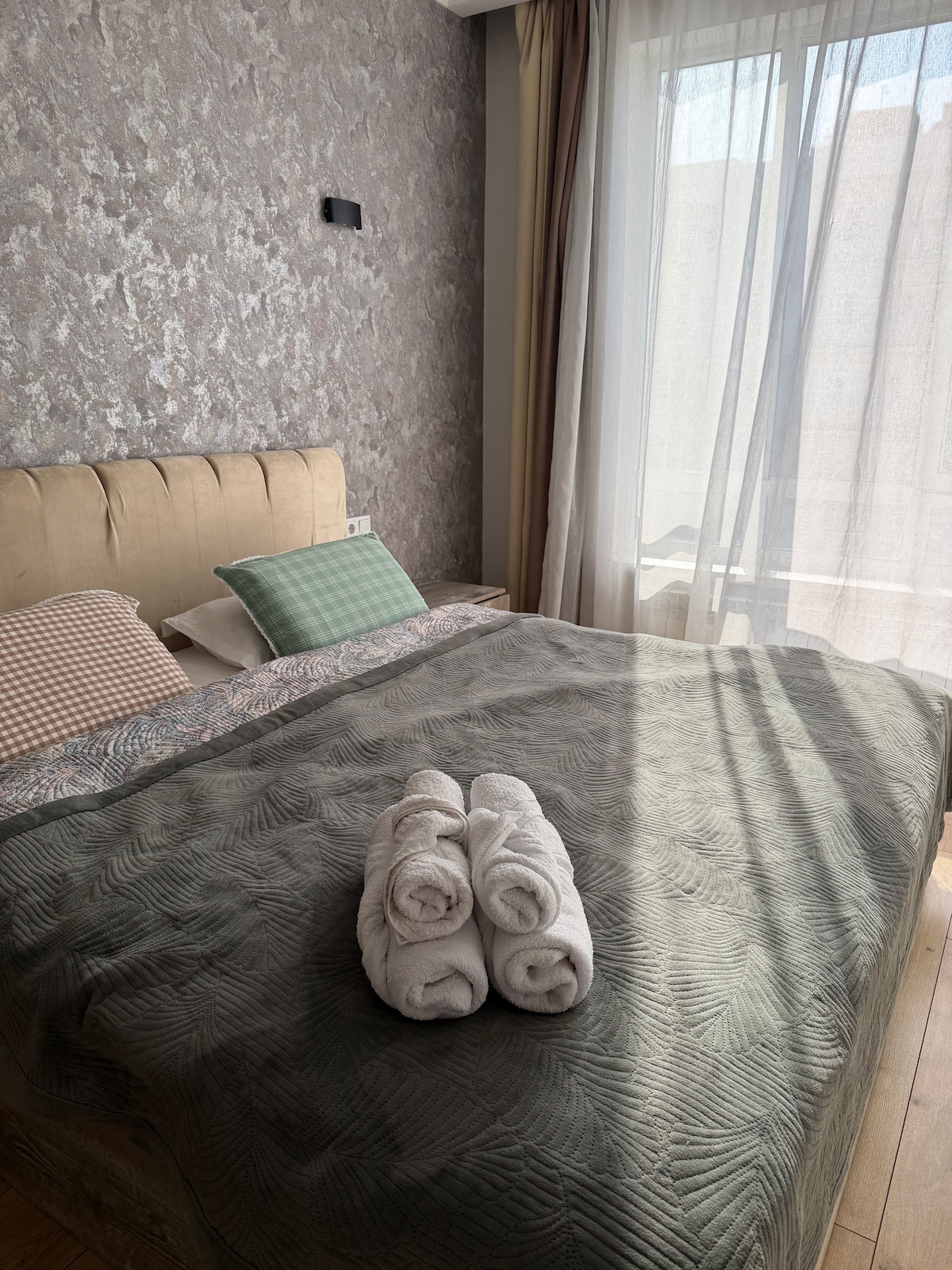 Уважаемые гости Мы рады предложить вам возможность отдохнуть в комфорте и почувствовать себя как дома. Каждый из апартаментов оформлен в едином стильном дизайне, что создает гармоничную атмосферу и ощущение спокойствия для наших гостей. Для вашего удобства в апартаментах предусмотрено всё необходимое: полностью оборудованная кухня для приготовления любимых блюд, высокоскоростной WI‑FI и SMART TV для развлечений и работы. Надеемся, что ваше пребывание у нас принесет только положительные эмоции!