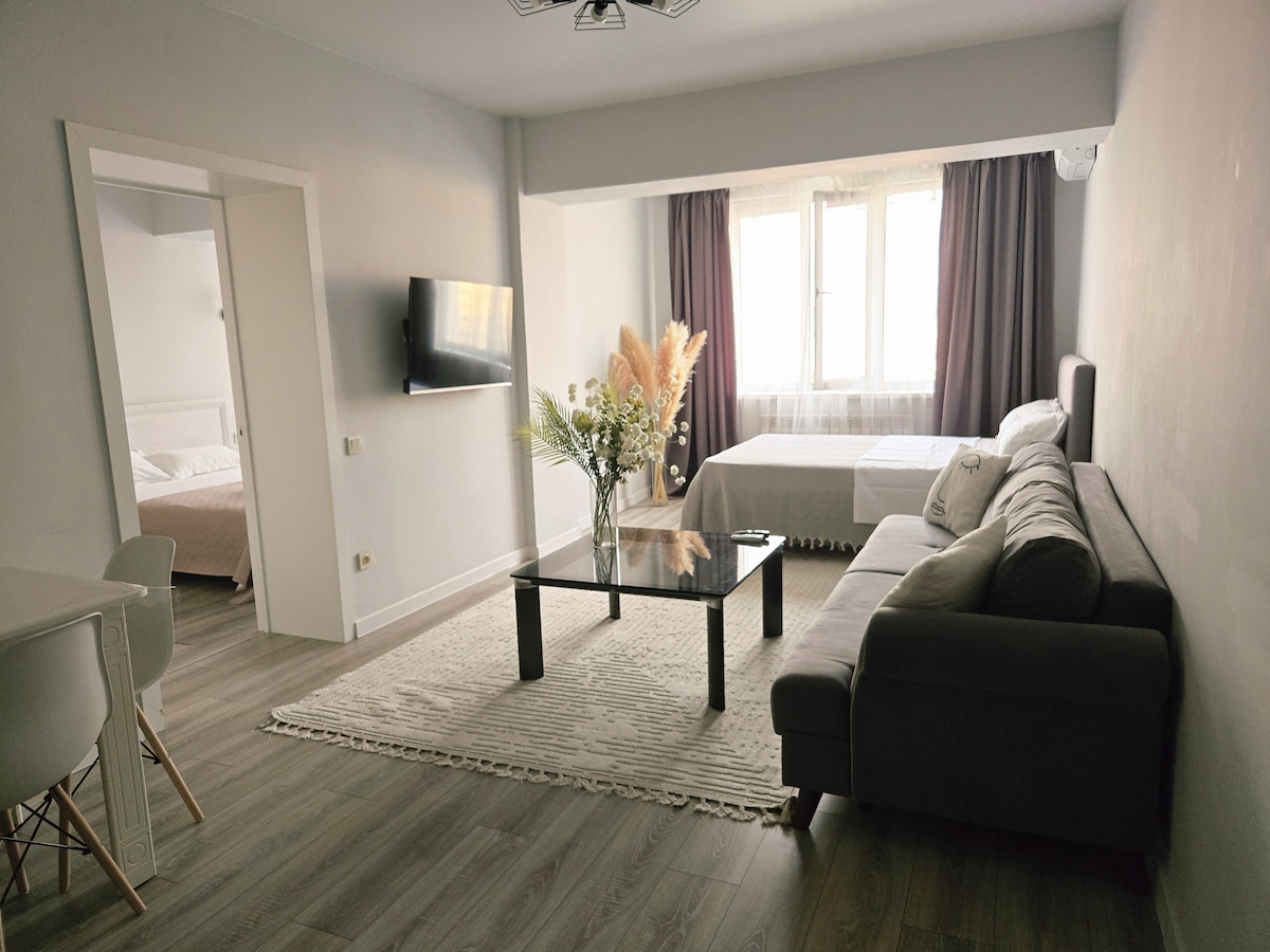 Мы часто путешествием сами арендуя апартаменты и очень ценим жильё, где всё продумано до мелочей для удобства гостей. Мы постарались использовать весь наш опыт обустраивая квартиру, чтобы вы себя чувствовали как дома. Новая, чистая, уютная квартира полностью укомплектована бытовой техникой, посудой и спальными принадлежностями. Рядом расположен центральный парк. В пешей доступности колоритный восточный базар, магазины, кафе, аптеки, остановки общественного транспорта. Интернет 5G, 3000 Каналов