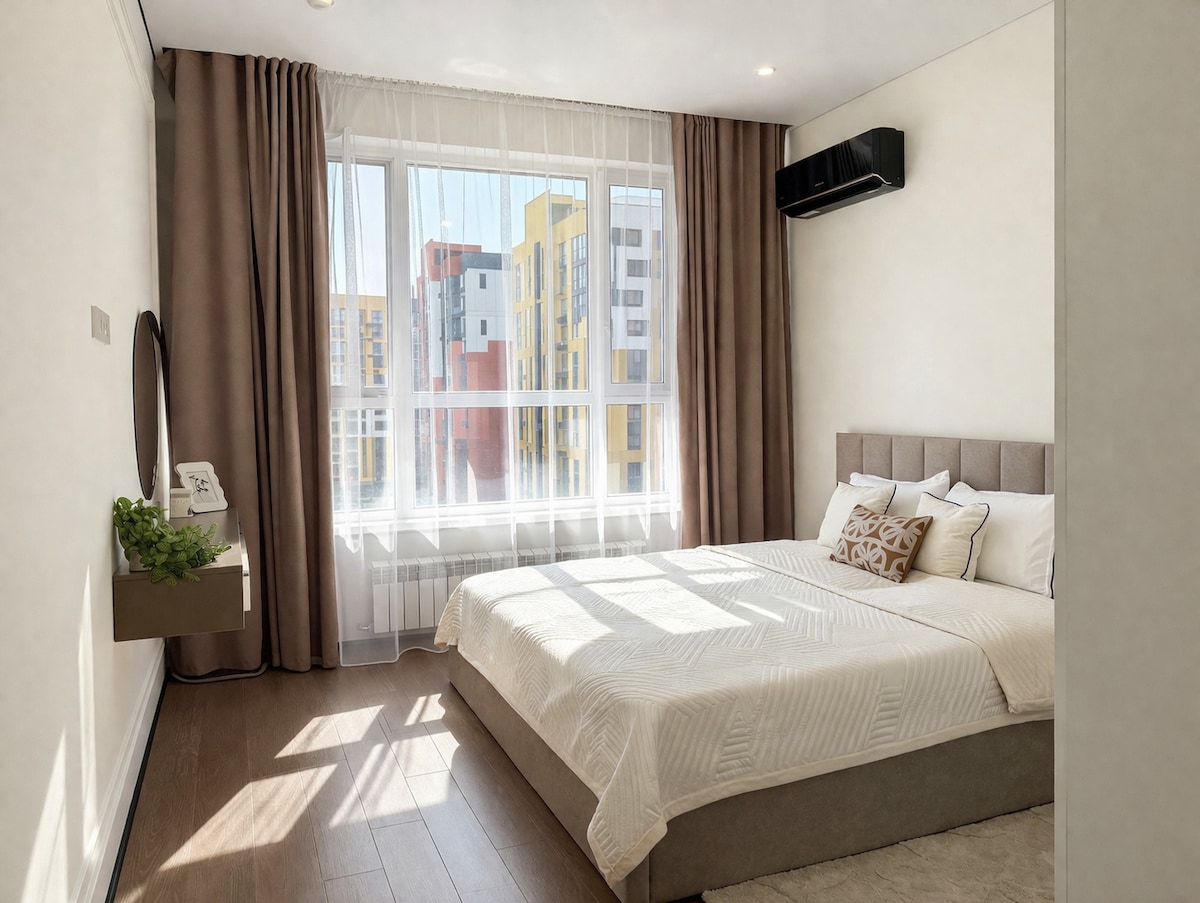 EN Modern apartment in Meridian: Wi-Fi, kitchen, washer, A/C, smart TV, balcony. Self check-in. Across from Mega Park Mall. RU Современные апартаменты в ЖК Meridian: Wi-Fi, кухня, стиралка, кондиционер, смарт-ТВ, балкон. Самозаселение. Напротив ТРЦ MegaPark.