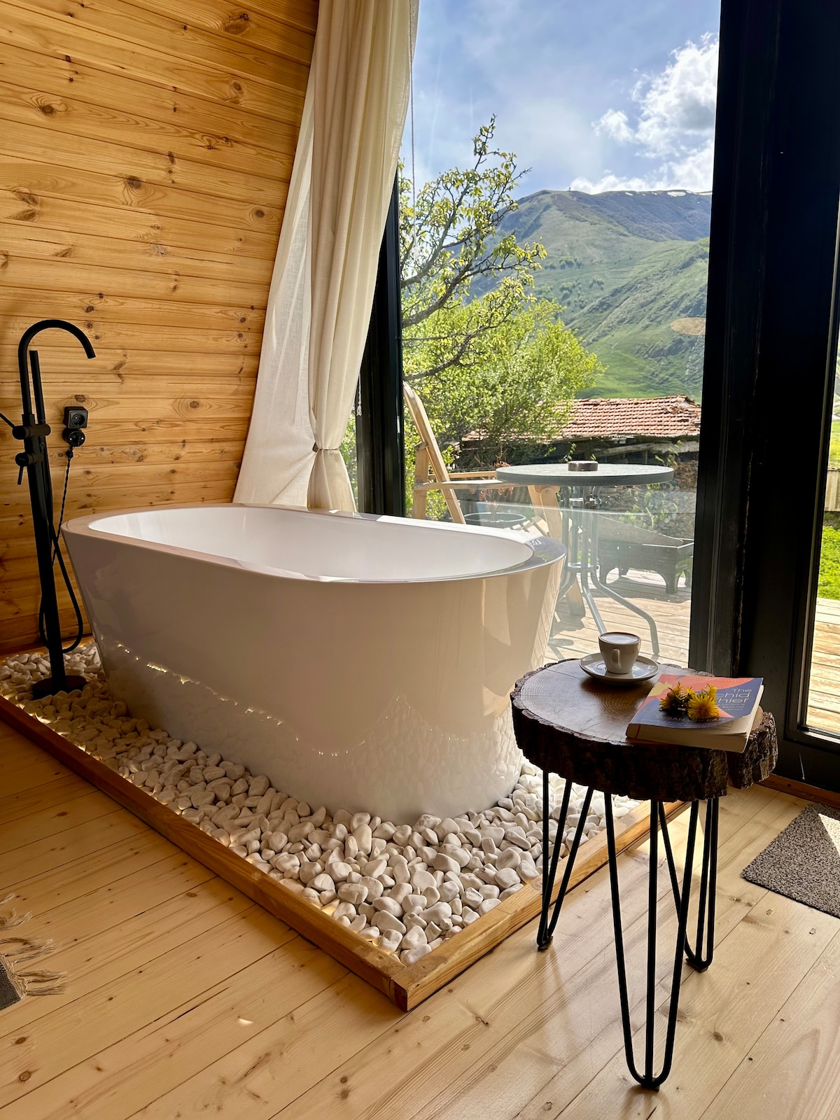 Mountain Waltz. Holiday home, located in the pine forest of Kazbegi. Featured by Elia Glamping