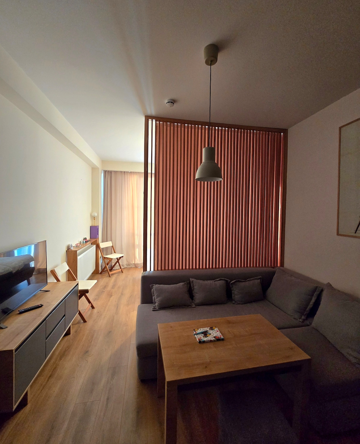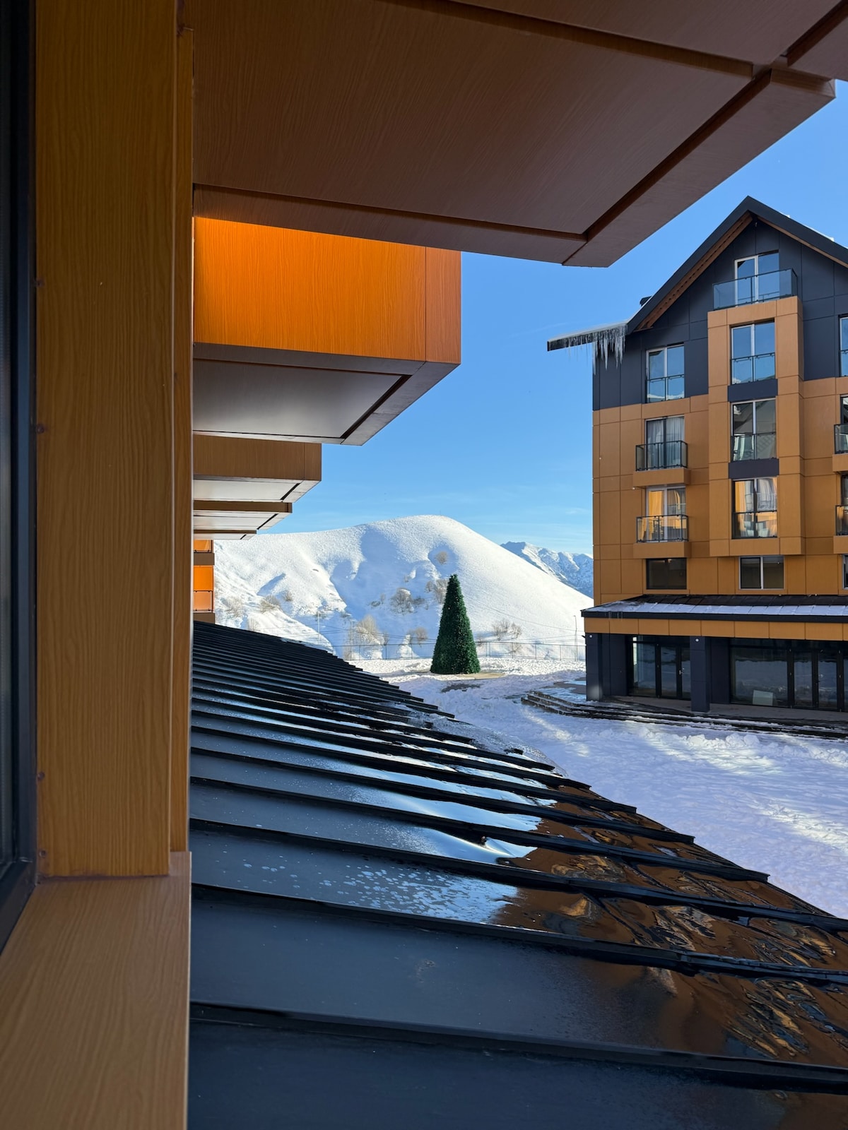 The apartment is in the newly built Atrium apart-hotel, New Gudauri, just a few meters from the gondola lift. It offers a spacious balcony with seating and stunning views of the mountains and ski tracks. This modern apartment includes a kitchen with all essential amenities. It features a private bathroom with toiletries, a seating area with a sofa and table, a smart TV, and high-speed internet. The reviews describe my place better than I ever could please take a look!