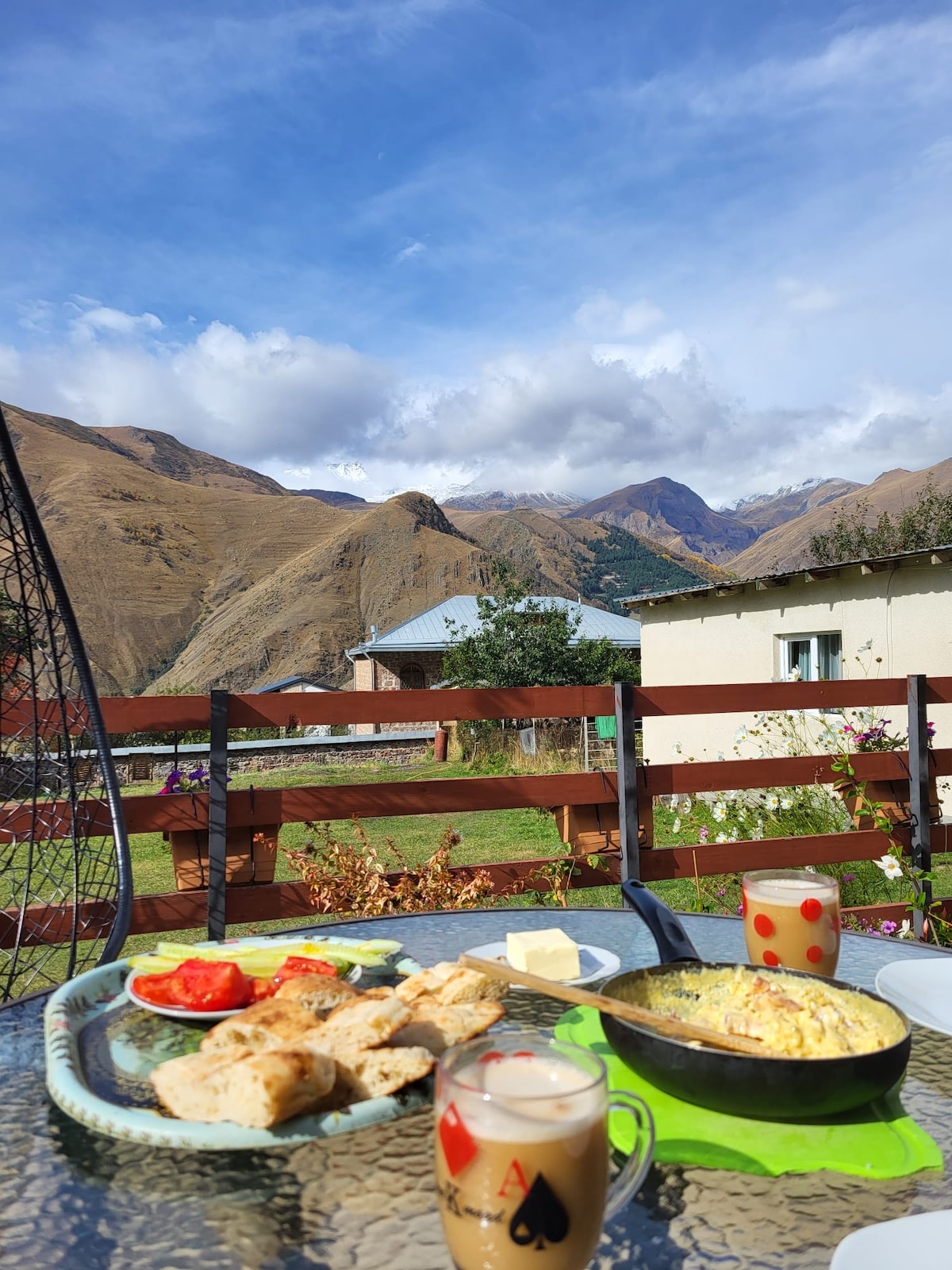 Forget all your worries in our piece of paradise and quietness Dear guest we offer you two separated cottages with a big yard, which is located near center of Stepantsminda. It is quite, comfortable and nice place for your vacation. All the season you can enjoy panoramic views of the wild nature.