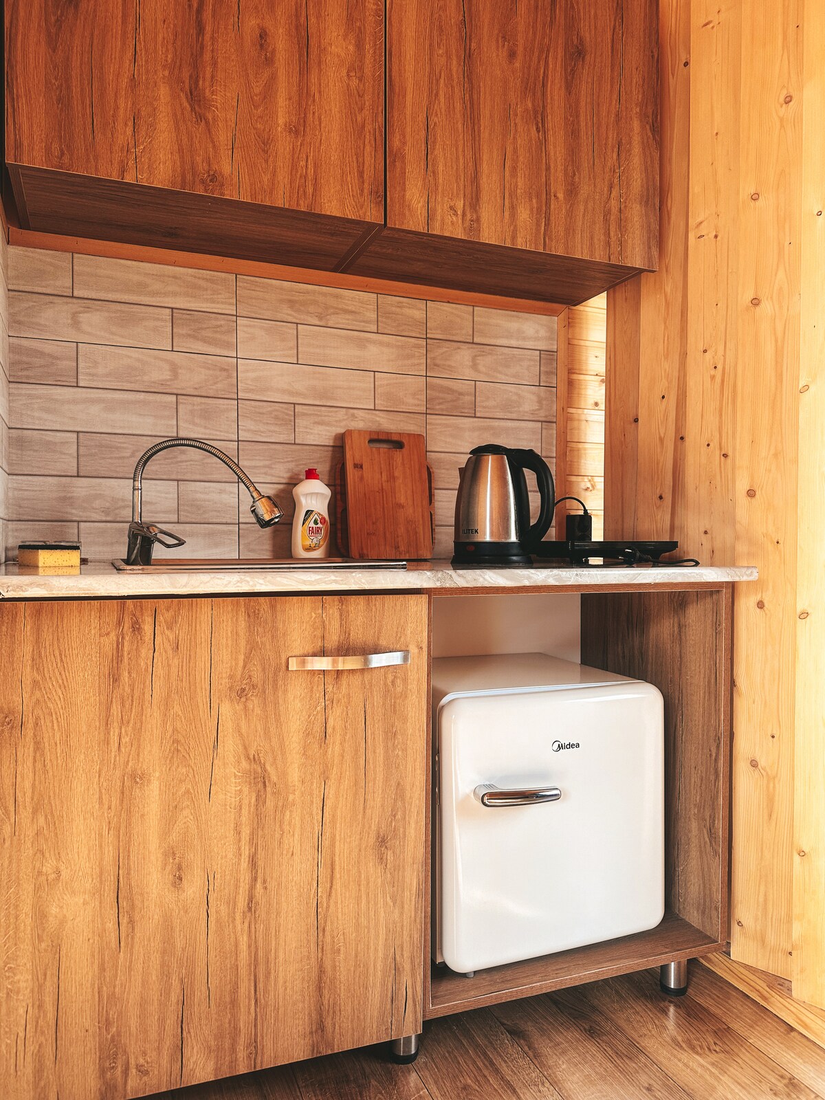 ● Electric stove, kettle and everything you need to cook ● 15 Mbps stable internet ● High-quality bed linen, bathrobe and towels ● Stunning view from the panoramic window in the bedroom ● Large private area for guests only (2000 sq.m) ● Free parking on site