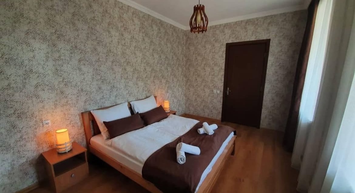 Well decorated and furnished Studio Hotel apartment with spectacular mountain view from both balcony and large king size bed, so you can enjoy the spectacular view from balcony or from the bed, it is located in the 2nd floor of loft 2 building of Redco Complex in Heart of New Gudauri, right next to Gondola Ski lift. The apartment has unique design, stunning mountain view from balcony. The apartment has super great location in the centre for those who like Skiing & other snow and mountain sports.