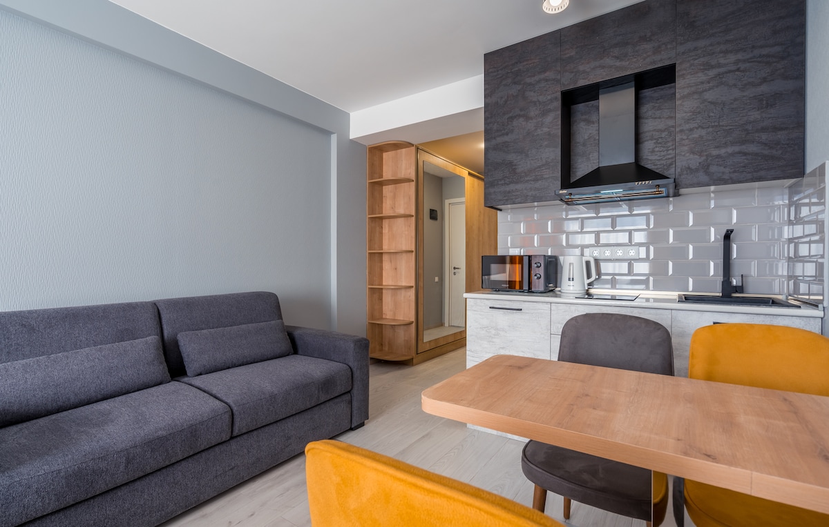 Apartment located In Loft 2. We offer you family studio apartments (28 sq.m.) in the best area called New Gudauri, within only 50 m. from gondola ski lift. Studio has TV, bathroom and mini kitchen with fridge, microwave, hob, kettle and all necessary tableware. Apartments equipped with 1 double bed+1 double folding sofa. Also, ski depot is available for keeping all the ski equipment.