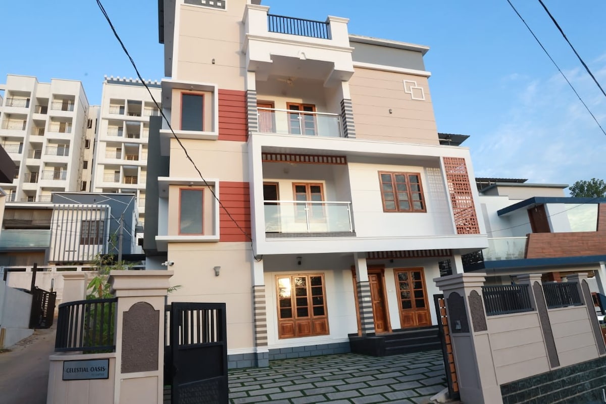 Casa Perla by Eco Escape Hub offers a peaceful stay in Trivandrum with 3 bedrooms, 3 bathrooms, a full kitchen, terrace, free WiFi, and parking. Located just 2 km from Technopark and less than 1 km from Kazhakoottam market and bus stand. Guests enjoy outdoor seating, 24/7 front desk, packed meals on request, and optional caretaker. Airport (11 km) shuttle available. Ideal for families and small gatherings with prior approval