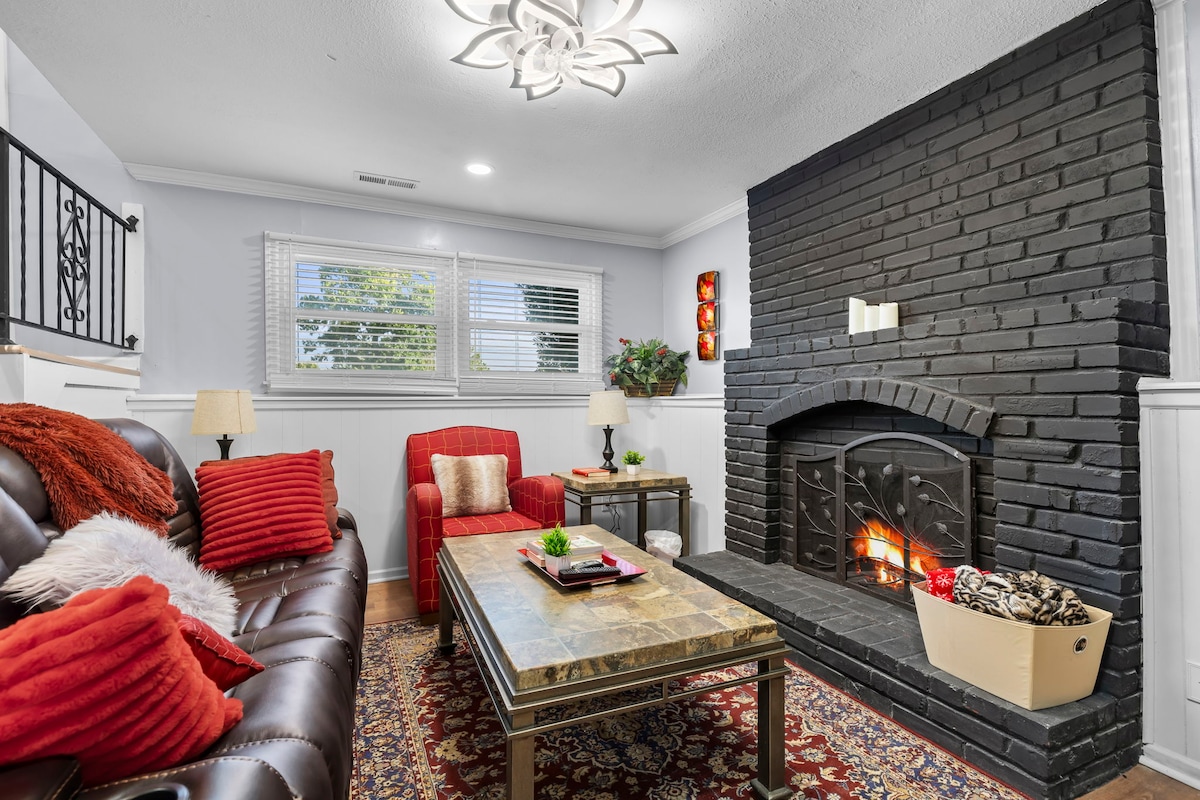 - Adorable house on large lot (not a guest house/cottage) -60 ft driveway - Separate bedroom with smart tv, queen size bed (comfy memory foam mattress) - Living room with 55" smart TV, leather sofa and additional seating - Fully equipped kitchen w/ eating area - Full bathroom w/ tub/shower - Washer/dryer - Table with leafs converts to great office area - Deck w/ outdoor seating and grill - 20 min from the Plaza, Westport and Downtown, 30 min from Lawrence, 40 min from the airport - $25 pet fee
