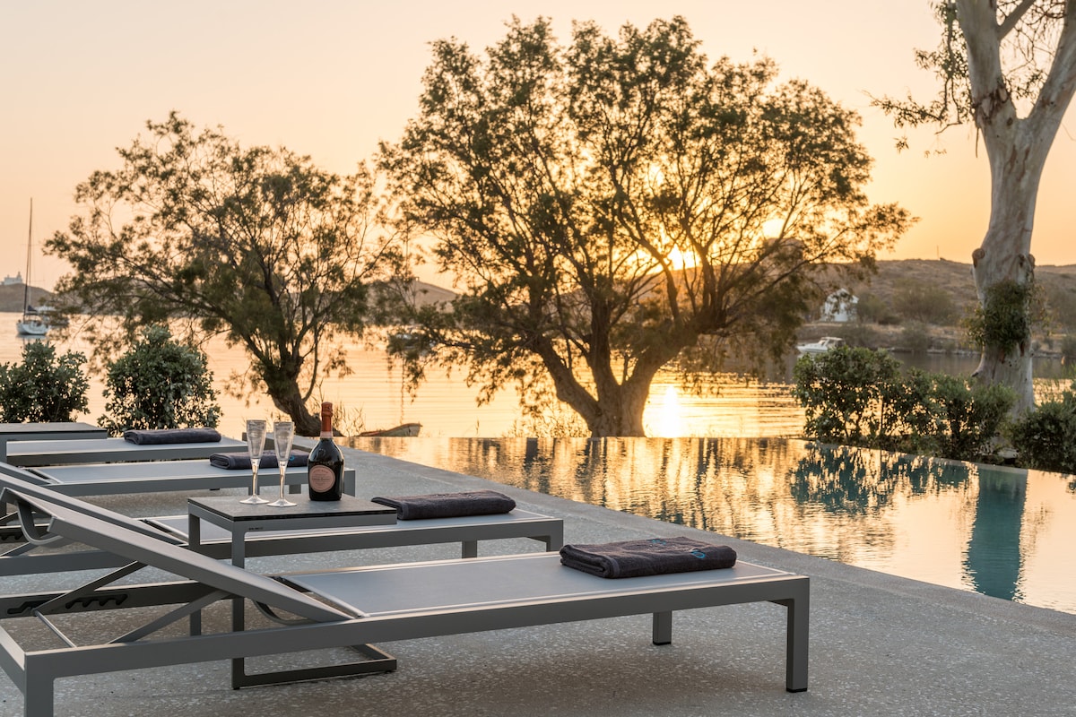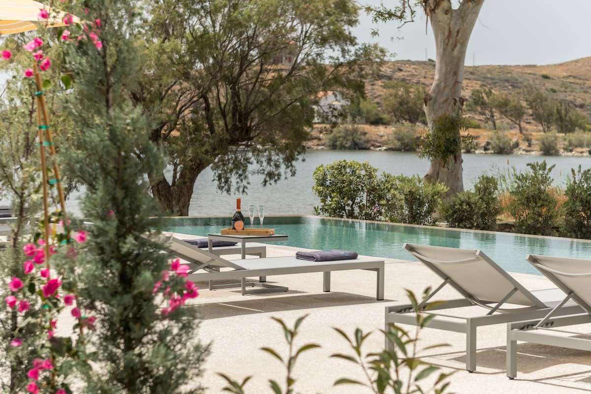 Located in one of Kea's most prestigious areas , Vourkari ,our suite blends understated luxury with authentic Cycladic simplicity. Just 50 meters from the island 's best restaurants, bars, and shops and only a few steps from the beach. Guests have access to the outdoor pool, which seems to merge seamlessly with the sea. Enjoy breathtaking views of the beach. The perfect spot to savor your glass of wine at sunset. With only four suites in total , the hotel ensures privacy and tranquility.