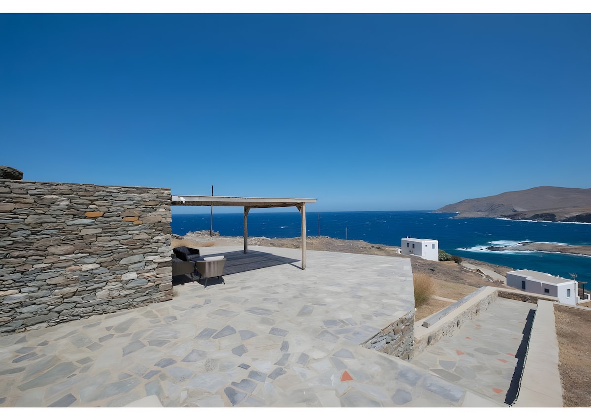 Located in Kythnos, this unique 90 sqm country house accommodates up to 4 guests and features 1 bedroom and 1 living room with sleeping arrangements, plus 1 bathroom. You will find a private TV for your entertainment. Please note that the kitchenette is not equipped with hot plates or oven so cooking is not available. Step outside to enjoy your private balcony and uncovered terrace, both offering stunning sea views of the Aegean Sea.