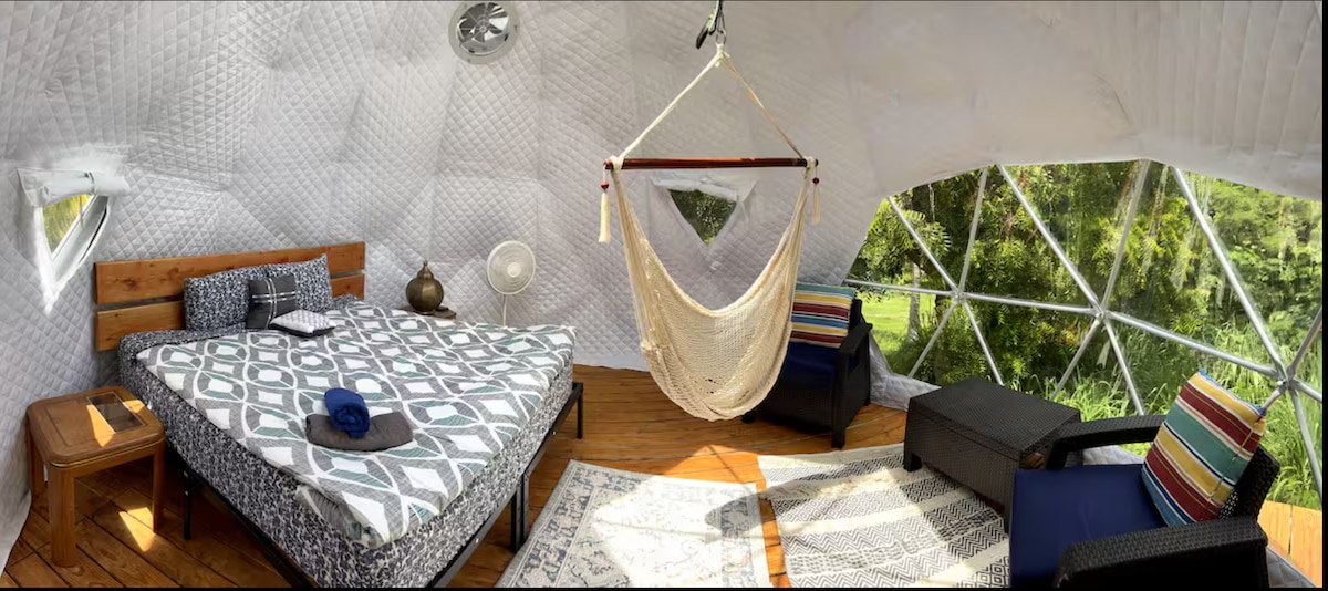 Overlooking the beautiful Kona Coast...The Dome at Ulu Inn says: "Aloha...let's Disconnect, to Reconnect" Nestled within a gated 5 acre estate, Settle into our exclusive Geodesic Dome suite...experience elevated glamping, designed for ultimate relaxation and ensured seclusion from the outside world. THE DOME & neighboring unit THE CUBE, are an ample distance apart, providing privacy from each other. You may get up close and personal with our Goats, Pigs, Geckos & wild birds that roam freely.