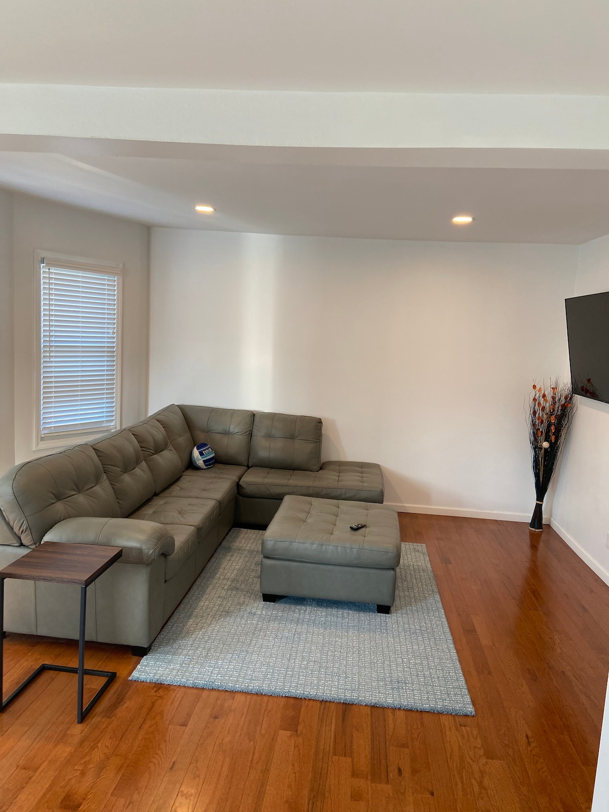 Finished basement in Harrison. A Queen size bed, Full size bed and a sleep sofa. Large bathroom. Spacious apartment. Kitchenette, refrigerator, microwave. Washer and dryer. Walking distance to Harrison Train Station and stadiums. Quiet street. Safe area to walk day and night to commute to NYC by train. Free parking in backyard. 7 miles from Metlife Stadium and The American Dream Mall. 12 minute drive. TV with Netflix, Fast Wi-Fi, Bluetooth bathroom speaker