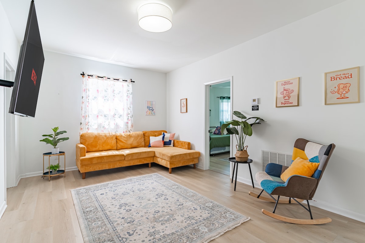 Welcome to our stylish and inviting casita, perfect for your next getaway! Our space features a luxurious king bed, ensuring a comfortable and restful night's sleep. The décor is inspired by mid-century modern style, featuring clean lines, natural materials, and a sleek, minimalistic aesthetic. The casita is conveniently located near restaurants, shops, and the NJ/NYC Path. Catch a train ride and arrive in NYC within 20 minutes! We hope you will enjoy your stay and make yourself at home!