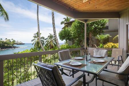 OCEANFRONT Kanaloa 3Br 2+1/2 Ba AC SPACIOUS 2000 sq ft. FREE Parking. FREE Resort Fees. FREE AC. Enjoy Meals Out on your Oceanfront Lanai. King Beds. Twins avail. Walk to Keauhou Harbor (Snorkel Tours, Manta Ray Boats), Secret Cove (Hee'eia), Movies, Market, Restaurants 5 min drive to Kahaluu 3 Pools, Hot Tubs, BBQs, Clubhouse, Oceanfront walkway, 16 Acres of tropical grounds. 15 Stairs 2 night min $298 cleaning & 17.96% Hawaii tax is shown on your Airbnb quote.