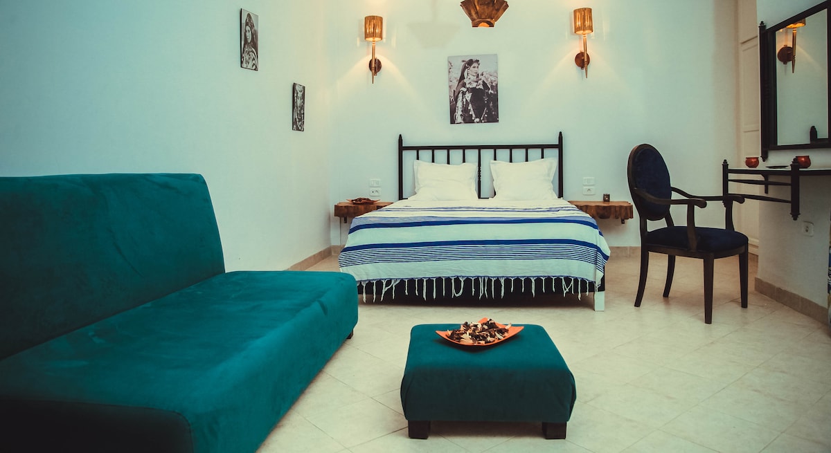 Résidence Le Ruisseau située dans le centre-ville de Tozeur offre une magnifique vue panoramique sur la cité. Les chambres personnalisées sont décorées dans un style local traditionnel et sont confortables. Vous trouverez également les chambres climatisées et accessibles avec une connexion Wi-Fi. Un petit-déjeuner est offert gratuitement aux clients Airbnb. Des visites du Sahara et d'Oasis peuvent organisées sur demande, individuellement ou avec des autres clients de la résidence.