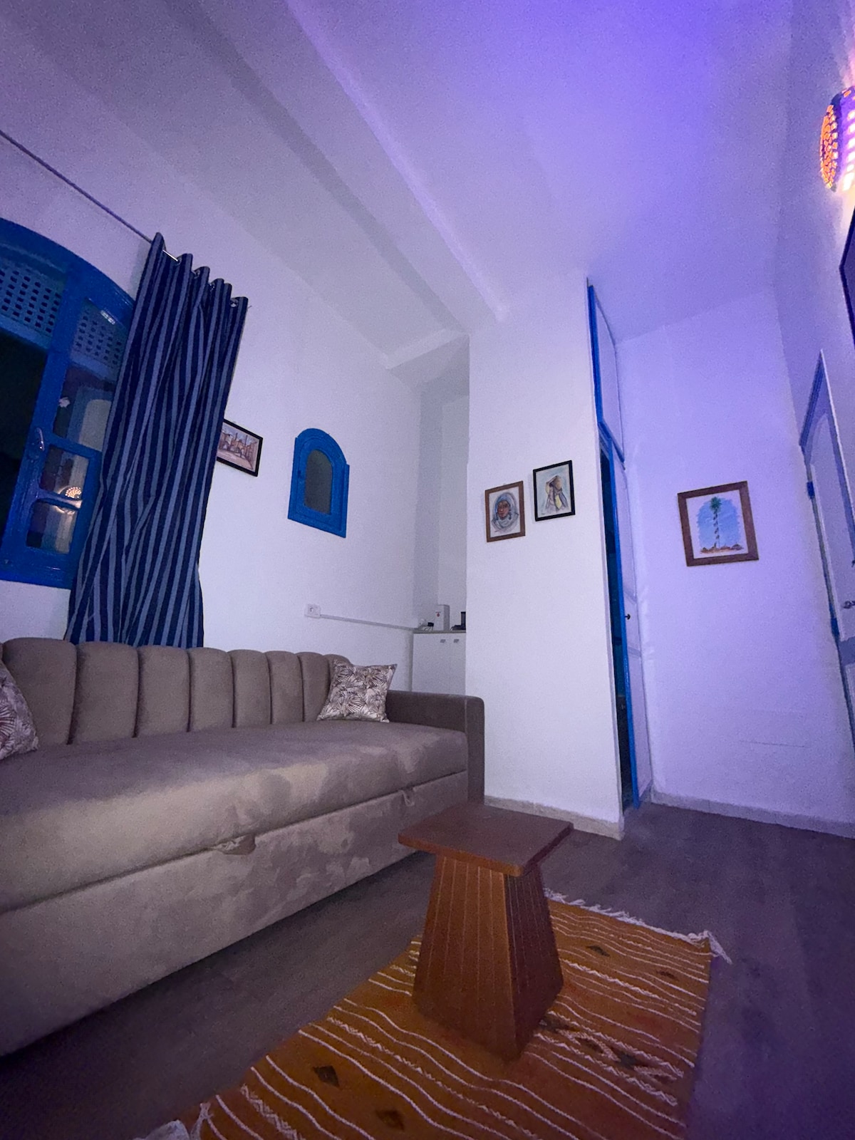 La Grande Suite vous accueille en plein cœur de Tozeur. Elle comprend une chambre-loft élégante avec grand lit pour 2 personnes, un salon lumineux avec canapé-lit pouvant accueillir confortablement un 3ᵉ invité. Le petit-déjeuner est offert chaque matin dans l’espace dédié au rez-de-chaussée. Envie de découvrir le désert ? Nous proposons une sélection d’activités inoubliables, authentiques et accessibles pour vivre pleinement l’expérience saharienne.