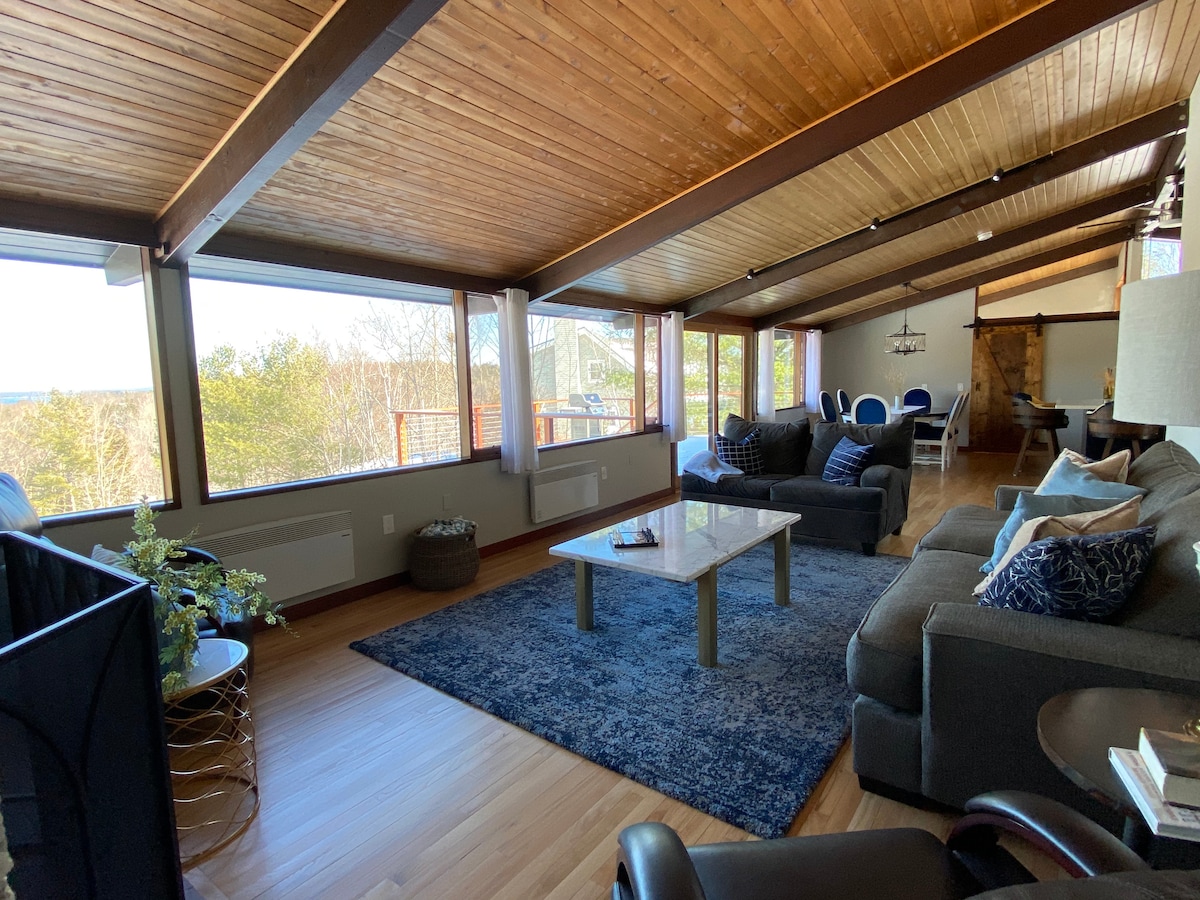 Second level newly rebuilt unit located in downtown Bar Harbor with incredible views from two 6' picture windows of Champlain, Dorr and Cadillac Mountains. The perfect place to call home when exploring Acadia National Park with multiple restaurants within a short walk. Designated off street parking for 2 cars with self check in and 3 mini splits for individual temp controls. It's a 10min walk from stunning sunrises on the Shore Path and 15min walk to sunsets from the Bar Island sandbar.