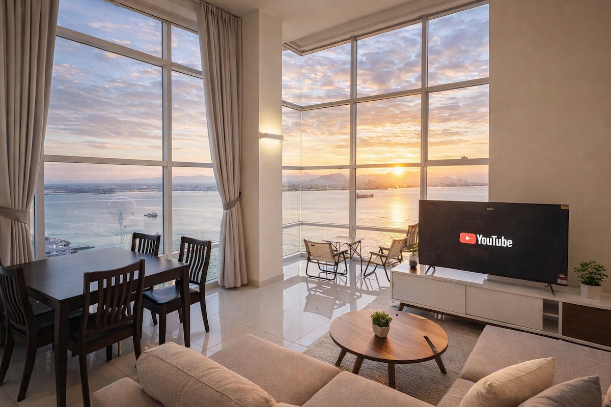 Our property is The Landmark by Comfy. 1. Sunrise view 2. Ocean View 3. Gurney Coastline Seaview 4. Georgetown Coastline Seaview 5. High floor level 39 with unblocked view 6. Large ocean view balcony 7. Olympic size adult pool 8. Kid pool 9. Playground & Gym 10. The famous Gurney Plaza mall & Gurney Drive Night Market is 3 minutes drive, 1km away. 11. UNESCO street art is 15 minutes, 7km away.
