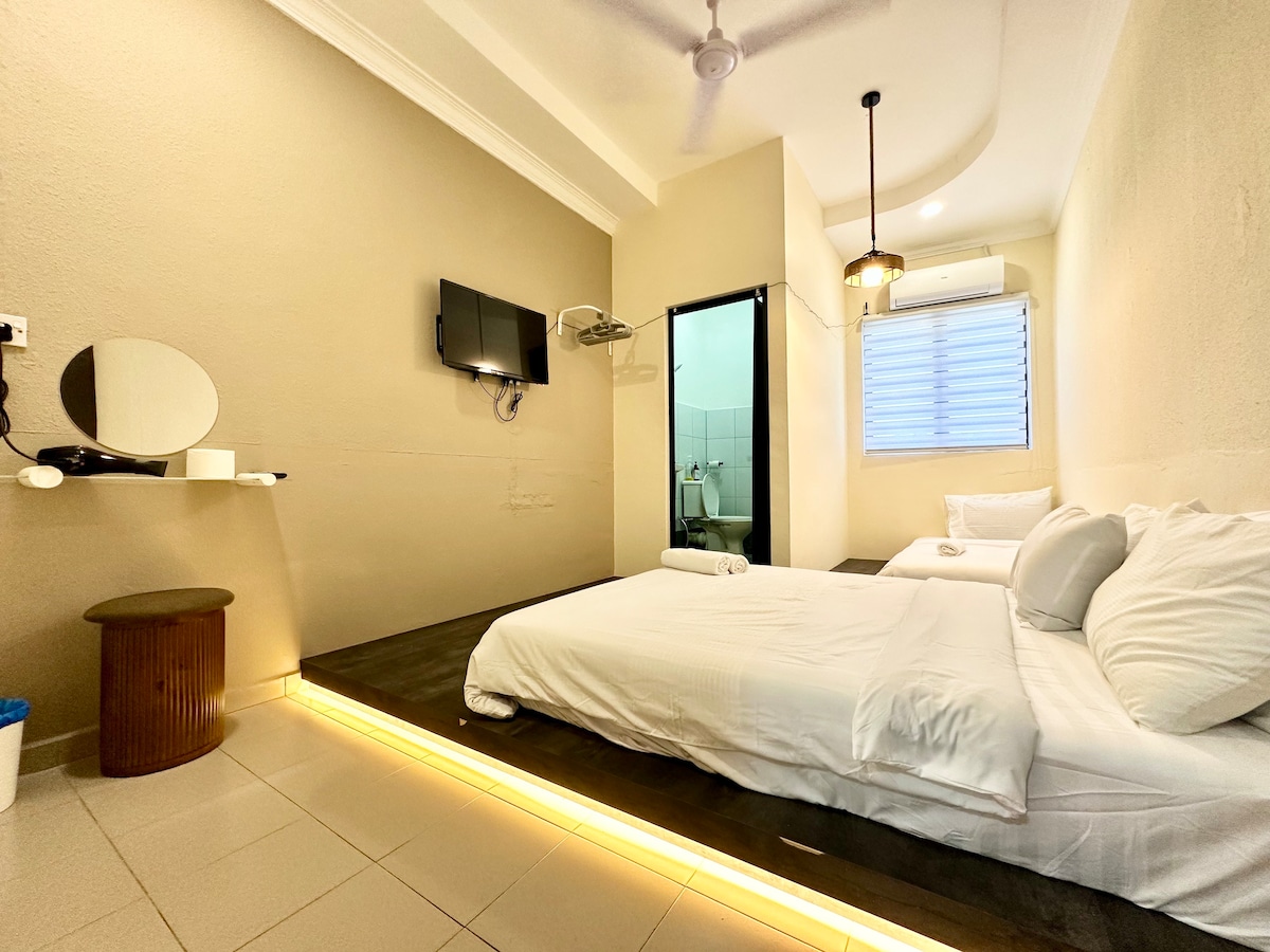 Enjoy a relaxing stay at our modern cozy guesthouse on Cenang Street, just 10 minutes walk to the beach. Perfect for couples, featuring a king-size bed, private bathroom with hot shower, balcony with Cenang River view, air conditioning, TV, mini fridge, kettle and Wi-Fi. Located within walking distance to cafes, restaurants, and shops, you'll have easy access to all that Cenang has to offer.