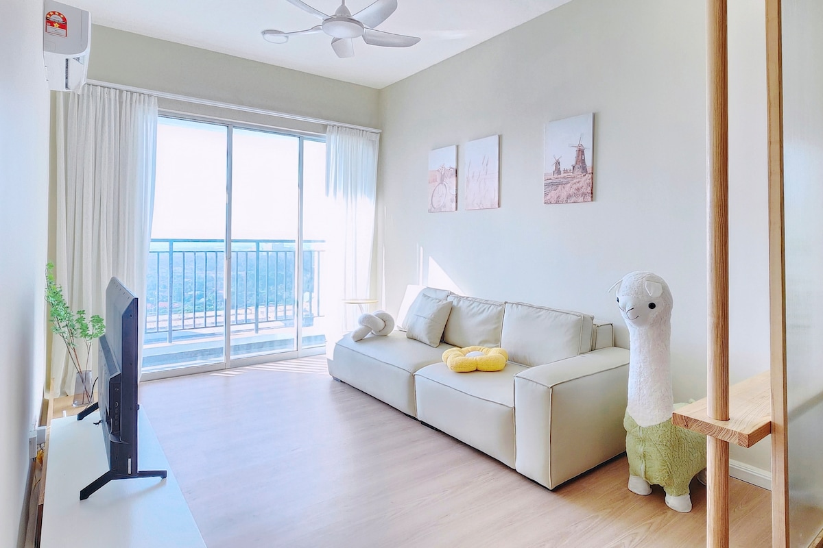 The first-ever homestay in Penang with a massage chair and SMEG Fridge. A cozy 2-bedroom condo in Urban Suites, nestled amongst greenery in the bustling heart of Georgetown. Its strategic location with local shops and restaurants is just moments away. Multiple access routes and walking distance to banks, markets, food courts & etc. State-of-the-art facilities on level 42, offer you a bird's eye view of Penang's architectural marvel, the Penang Bridge.