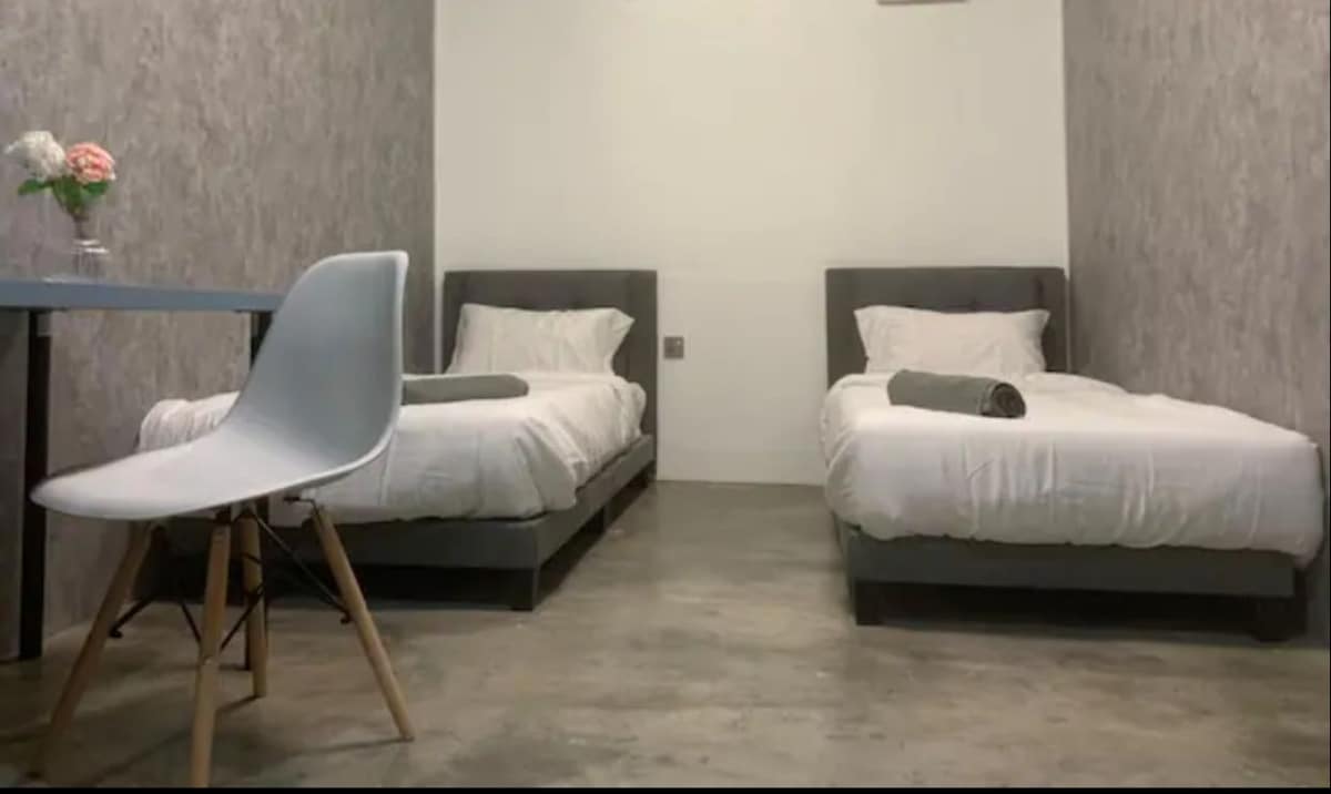 This is a guesthouse offer private rooms. Private Space-a private room for your own stay: 2 Single Bed (bedsheet & blanket included) +1 Single Bed (Charges Apply) Towel Table Chair Cupboard Power Plug Hair Dryer Hanger Public Space-shared between guests: Individual Locker Work Station Dining table & chairs Cooking utensils (light cooking only) Microwave Kettle Refrigerator Washer+Dryer Water Filter 2 Bathrooms We do have room attached with private bathroom, message me if you need.