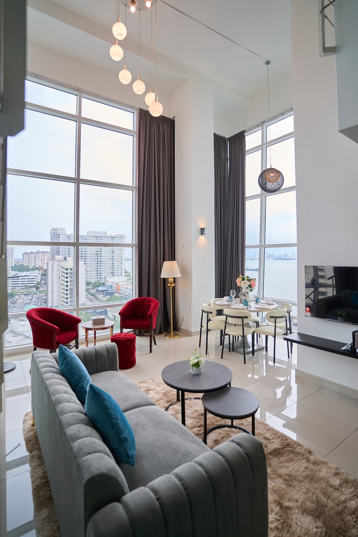 Hosting is our passion! Why our guest love us? •We are 5 stars SUPERHOST •180° PANORAMIC SEAVIEW •Slumberland branded mattress (hotel standard) •At waterfront •1000 square feet (whole duplex unit) •1 private car park •TIMES WiFi •Netflix TV •30 restaurants, cafes, pubs, Starbucks, Coffee Bean, Subway, 7-Eleven •Fully air-conditioned •5 to 10 minutes drive to Chew Jetty and UNESCO Heritage old town •15 - 20 minutes to airport