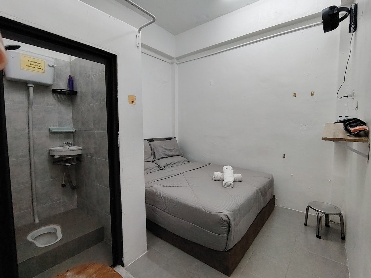 Guesthouse at 2nd floor , total have 6 rooms, this Room with one Queen-sized bed, shared bathroom, perfect for backpack guest, couples and BFFs, clean and cozy with air-conditioner. Simple, yet filled with adequate lighting, high-quality mattresses for guests to sleep comfortably. *NO Lift , NO window, NO attached bathrooms* but guests will have access to shared bathrooms with hot shower (complimentary shampoo & body soap). Towels & slippers are provided in room for a more comfortable stay.
