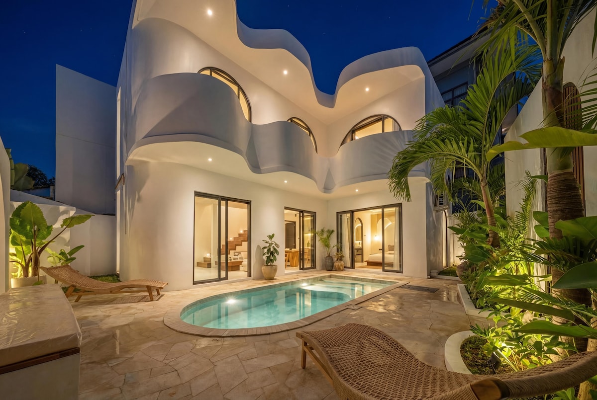 Discover our stunning 3-bedroom Mediterranean-style villa in Nyanyi, Bali, with breathtaking jungle views, direct river access, and a private rooftop. This serene retreat features elegant design, enclosed living spaces, and a private pool nestled in lush nature. Perfect for families or groups, unwind to the sounds of the river or enjoy sunsets from the rooftop. Just a short drive from beaches and cafes, this villa blends Mediterranean charm with tropical tranquility. Book your stay today!