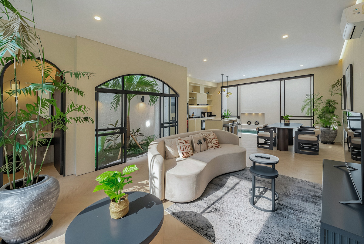 Brand new designer villa in the heart of Umalas: • 3 elegant air-conditioned bedrooms with garden views • 3.5 modern bathrooms with amenities, slippers & hairdryers • Spacious open-plan living room with smart TV & fully equipped kitchen • Private pool surrounded by lush tropical greenery • 300 Mbps Wi-Fi for work or streaming • Daily cleaning, fresh linens & towels provided • Netflix & PS5, baby amenities & BBQ grill on request • Concierge service for tours, transport, spa & more