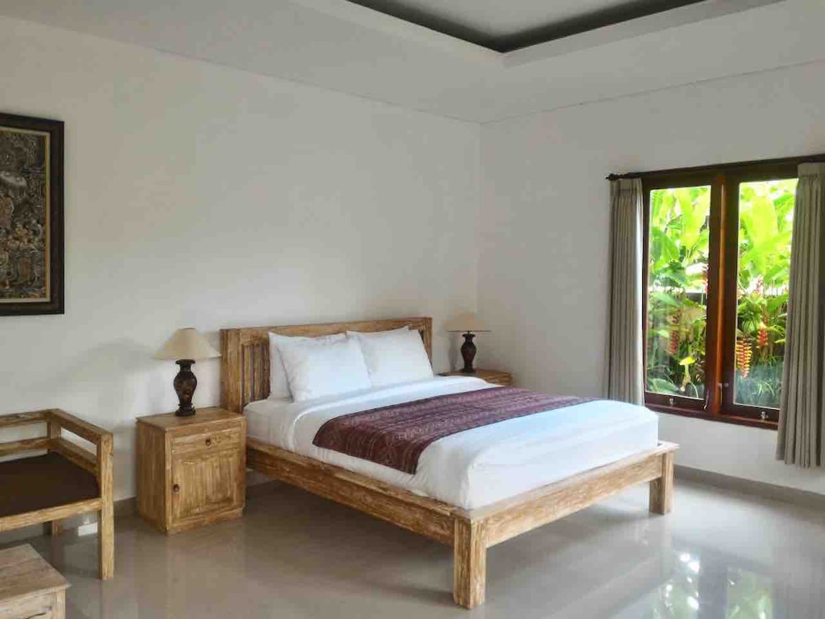 Romantic villa with tropical garden located just walking distance to Ubud centre, 2 Bedrooms: - one room with double bed sized and ensuite bathroom - other room with twin bed size and also with clean ensuite bathroom as well. overlooking a valley with river view : - beautiful and great atmosphere, - Restaurants and shops are walking distance, only 200 mtrs from Ubud mainstreet : very safe area with staff around 24 hours. - Complementary amenities & wifi in entered property,